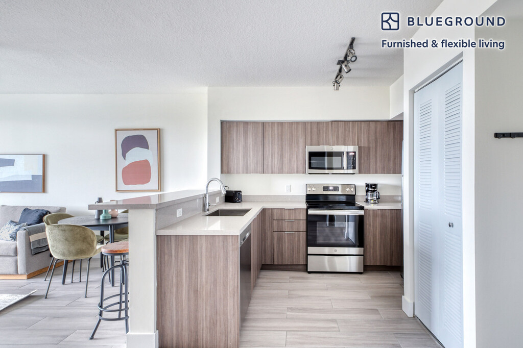 Feel at home wherever you choose to live with Blueground. You’ll love this stylish Riverside furnished one bedroom apartment with its modern decor, fully equipped kitchen, and roomy living room. Ideally located, you’re close to all the best that Miami has to offer! (ID #MIA48) The advertised rate of $2,290/month is the lowest available price, based on a 11 month(s) and 29 day(s) stay with a move-in date of January 6, 2026. Rates vary depending on the duration of stay, season, and other parameters. For exact pricing and additional pricing components, please visit our website and enter your desired move-in and move-out dates. The rate is applicable when billed upfront; it can be higher if billed in multiple payments. Brokers are welcome to reach out. Were you looking for an unfurnished lease? Try Blueground instead and upgrade from unfurnished to furnished living: - Furnished at rates comparable to unfurnished - No setup or furniture costs - save thousands - Move-in ready - save time, just bring your suitcase Designed with you in mind Thoughtfully designed with bespoke finishes, modern furnishings, and a fully equipped kitchen, you’ll enjoy that “I’m home” feeling with this Blueground apartment. Whether you’re lounging in your sophisticated living room streaming the latest and greatest entertainment on the smart TV or premium wireless speaker, or getting some well-earned rest on the superior quality mattress with luxury linens, you’ll fall in love with everything this Riverside apartment has to offer. This apartment also offers in-apartment laundry. Sleeping arrangements King Bed, 70.8in/180cm Amenities Building amenities unique to this one bedroom apartment include an on-site: - Doorman - Dryer - Elevator - Swimming pool - Washing machine - Parking - Pets allowed Arrival and ongoing support The entire apartment is yours to enjoy! Throughout your stay, you’ll have access to our Client Experience team through the Blueground App. You can schedule additional cleanings, submit maintenance requests, and view our neighborhood recommendations with just a few taps. We’ll share all details upon confirmation of your stay. Other things to note Building amenities may have an extra cost. This Blueground apartment has flexible lease options, allowing you to book it for one month, a year, or more. Pets are welcome, though weight limits and breed restrictions apply and may incur fees. Parking is offered based on availability and is subject to a fee. We take great pride in ensuring every photo displayed is shot in our own units with our actual furnishings. That said, we regularly refresh our decor and furniture arrangement, which may differ from what’s pictured. [SI]