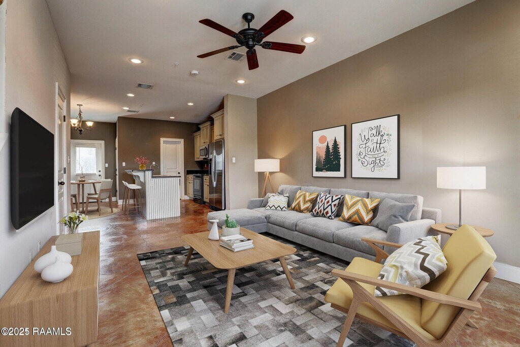 New Orleans style condo within walking distance to UL Lafayette and Girard Park.Located across the street from the Lafayette Police Department and minutes fromrestaurants, shopping and hospital. Ideal set-up for roommates with two bedrooms upstairs each having their own bath. Downstairs half bath for guests. Kitchen offers stainless steel appliances including refrigerator, granite countertops, walk-in pantry and hookups for stackable washer/dryer. Wired security alarm system to be activated by tenant. Free WIFI and assigned parkingfor two cars. Fire alarm with sprinkler system. Available for immediate occupancy.Photos are representative of the style/layout of the condo units. See it Today!