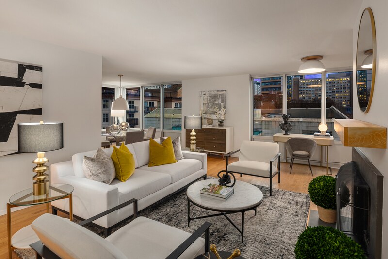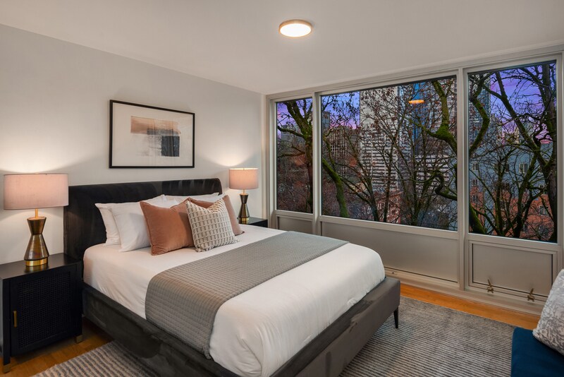 Please schedule showings via Tenant Turner. Upon requesting a tour, you will automatically receive an email with relevant information to schedule your tour. Experience refined urban living in this exceptional First Hill penthouse, located in Talisman, one of Seattle’s most sought after mid century modern condominium communities. Defined by its distinctive steel and concrete construction, the residence features expansive walls of windows that showcase panoramic treetop and skyline views. As a corner unit with exposure in three directions, the home enjoys abundant natural light throughout. The private balcony serves as a peaceful spot to take in the city’s vibrant atmosphere. The open concept layout includes an oversized living room with updated hardwood flooring that flows seamlessly into the dining area with its impressive city outlook. The sophisticated kitchen offers classic shaker style cabinetry and a cozy breakfast nook. Both bedrooms feature west facing views, and the primary bedroom includes a spacious walk in closet. The spa inspired bathroom is designed for relaxation, equipped with an air jetted heated tub and steam shower. One assigned parking space is included along with building amenities such as a gym, sauna, card operated laundry, and additional storage. The unit also features the Spring Aqua water system for high quality drinking and cooking water. With close proximity to downtown, Capitol Hill, South Lake Union, and the energy of Pike Street, this home is perfectly positioned for the urban lifestyle. Lease Terms: RENT. $4,195.00 per month TERM. 12 months minimum. UTILITIES. Water, sewer and garbage included. Residents will be responsible for electricity and internet. MOVE-IN FEES. $3,600 security deposit (refundable) + $400 nonrefundable cleaning fee + first month of rent. PARKING. One designated parking spot for an additional $200/mo. PETS. No pets allowed.