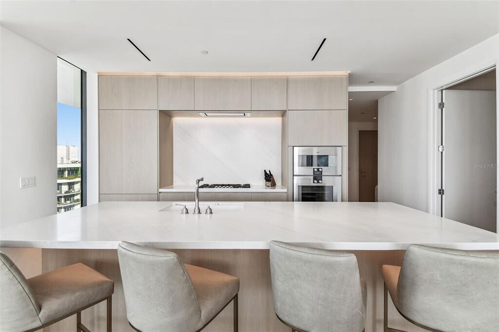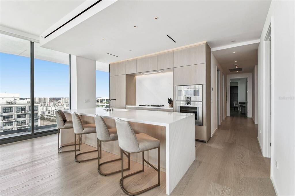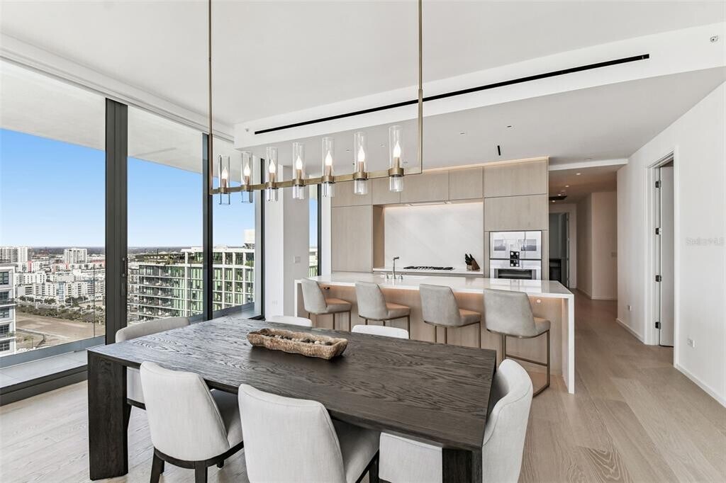 Discover an unrivaled living experience at The Tampa EDITION Residence 2202,a sophisticated corner unit masterfully designed and framed by sweeping vistas of Tampa Bay,the sprawling downtown skyline,and the visionary Water Street development. This residence,completely furnished and inclusive of all utilities,epitomizes refined urban luxury. The exquisite open floor plan flows seamlessly between living,dining,and entertaining spaces,designed to offer an unparalleled experience of comfort and elegance. The private primary suite serves as a luxurious retreat,complete with a spa-inspired bath clad in Polaris White marble,a freestanding Kaldewei soaking tub,a custom double vanity,and ambient lighting that enhances its serene atmosphere. This sanctuary also includes a custom walk in closet and direct access to a wrap-around terrace with breathtaking views. An additional bedroom,equipped with its own ensuite bath,provides sophisticated accommodation for family or guests. Every element of this home reflects meticulous craftsmanship and elegant design. Expansive floor-to-ceiling windows flood the 10-foot-ceiling interiors with natural light,seamlessly blending indoor and outdoor spaces. Sliding glass doors from each room open to generous wraparound terraces adorned with post-less glass railings,offering uninterrupted views of the city below. Thoughtfully curated details include 10-inch custom Grato white oak floors,Polaris White marble countertops with a waterfall island and full-height backsplash,ambient cove lighting,and custom Molteni white oak cabinetry. The state-of-the-art Gaggenau kitchen features a wine cooler,five-burner gas cooktop,and a discreetly integrated Miele vented hood. As part of The Tampa EDITION,residents enjoy exclusive access to an array of five-star amenities envisioned by legendary hotelier Ian Schrager. From award-winning dining experiences led by celebrated chefs to the rejuvenating full-service spa,each offering embodies EDITION’s dedication to world-class living. The rooftop pool and terrace provide a tranquil escape with panoramic city views,while residents-only spaces,including a private gym,social kitchen,and lounge,create an ambiance of refined exclusivity. Complete with two dedicated parking spaces,private storage room and 24-hour concierge,this residence anticipates every need. Nestled within Water Street Tampa,the world’s first WELL-certified community,The Tampa EDITION is the ultimate intersection of wellness,innovation,and sophistication. Residence 2202 invites you to experience an elevated lifestyle unlike any other in Tampa. MLS# TB8451447