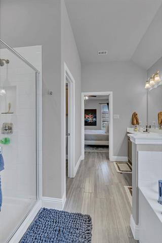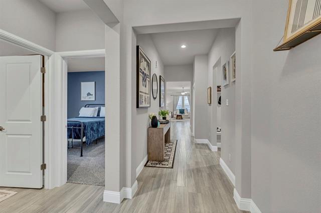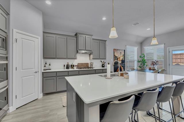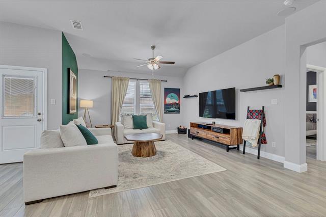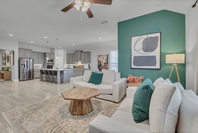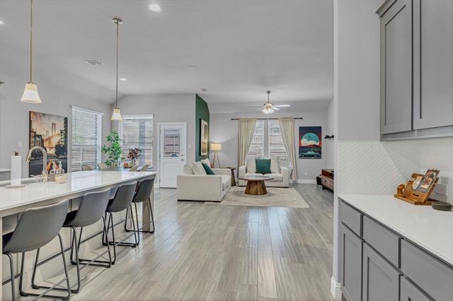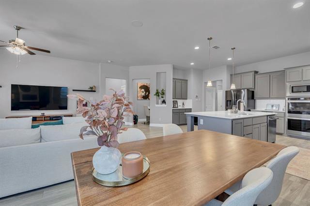 This home features all of your favorite upgrades. Open kitchen with tons of counter space, quartz countertops, oversized island, gas stovetop, and double-oven. Ceramic tile plank flooring throughout the home. Built-in surround sound system in the main living areas and backyard. Enjoy your large, corner lot backyard from the massively extended patio equipped with a built-in gas line for the grill. Community pool and park are right down the street. Other popular features include smart home technology, security system, tankless water heater, mudroom, sprinkler system, and office nook. Neighborhood located in the esteemed Northwest I.S.D. and close to historic downtown Denton, Texas Motor Speedway, Tangier Outlets, Roanoke Main Street, and Flower Mound shopping and restaurants.