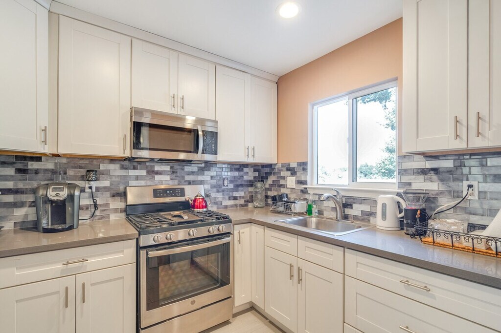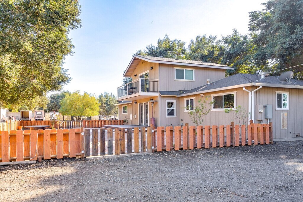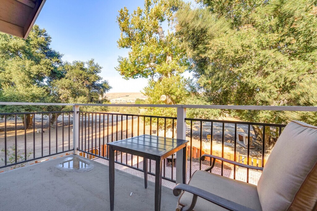 Escape to tranquility in this charming 1-bedroom, 1-bath cottage in Morgan Hill, offering a peaceful retreat with a furnished balcony and stunning mountain views. Perfect for small families and nature lovers, this vacation rental is equipped with 2 Smart TVs, a well-stocked kitchen, and a fenced patio. Enjoy nearby outdoor activities such as golfing, exploring the Coyote Creek Trail, or visiting Anderson Lake. Feel at home with the cottage's thoughtful amenities, including an electric fireplace, a deck with a heater, and a well-equipped kitchen featuring a refrigerator, stove/oven, dishware, cooking basics, spices, a Keurig coffee maker, microwave, toaster oven, and toaster. Relax in comfort with free WiFi, keyless entry, mini-split A/C, central heating, and provided linens and towels. Parking is available with options including a garage for one vehicle, a carport for another, and driveway space for two vehicles. Trailer parking is also available on-site. Nestled in a quiet location, this cottage offers easy access to outdoor recreation and is just 7 miles from Anderson Lake County Park. Enjoy the serene ranch environment with farm animals and the convenience of nearby attractions. The cottage is a 2-story building with 2 steps to enter and additional stairs to access the bedroom on the 2nd floor. A long-term tenant resides on-site in the main house with a separate entrance. The property features 4 exterior security cameras for your safety, facing outward and recording sound and video when activated by motion. An event venue nearby may have live music until 11:00 PM. No smoking, pets, events, parties, or large gatherings are allowed. Guests must be at least 25 years old to book, and additional fees and taxes may apply. Stay connected with complimentary WiFi, perfect for remote work or streaming your favorite shows on the Smart TVs. [SI]