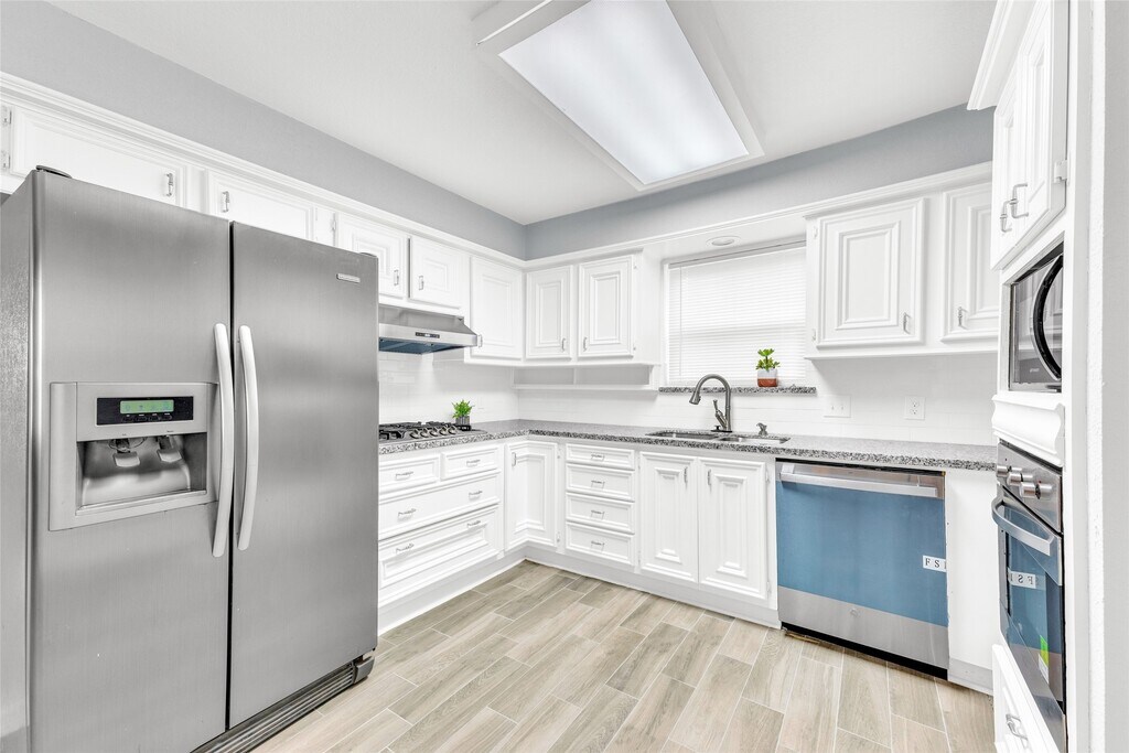 This 3 bedroom,2 bath home is conveniently located on a quiet,tree-lined street in Woodedge Village,just minutes from HWY 290,FM 1960,and Vintage Park shopping center. Features of this 1894 sqft home include a spacious living room with a fireplace and built-in shelves,breakfast area with built-in shelves and desk,good-sized bedrooms and closets,master bedroom with en suite bathroom,fully fenced yard,and attached 2-car garage. Tile wood-like flooring in the living room and entryway,tile in the kitchen and breakfast area. MLS# 55005905