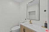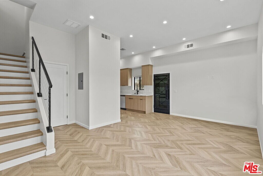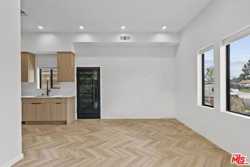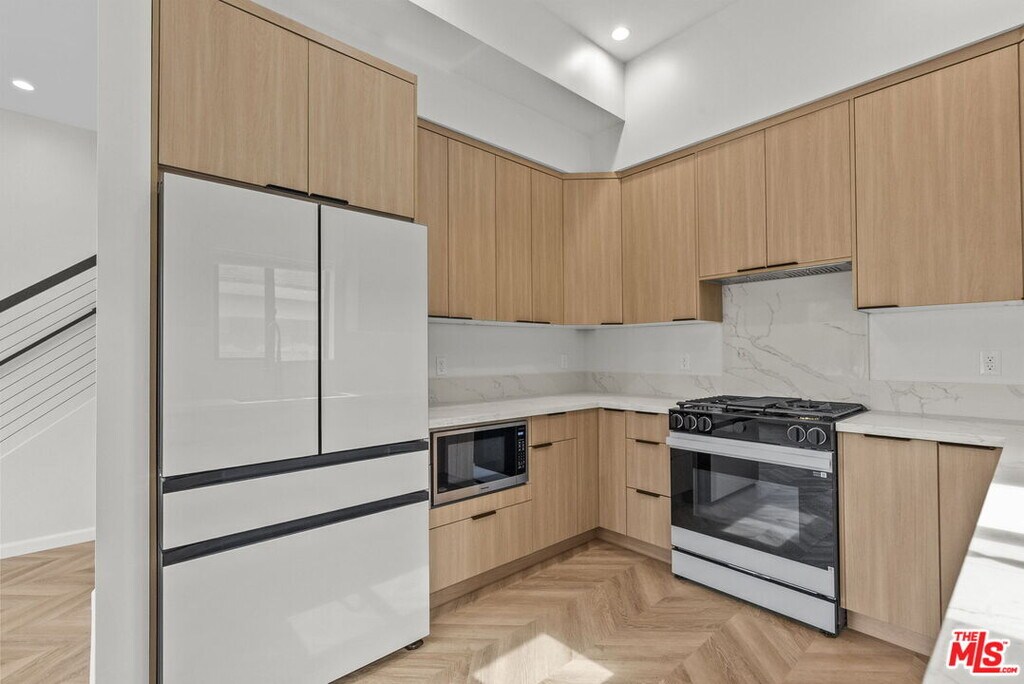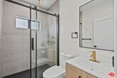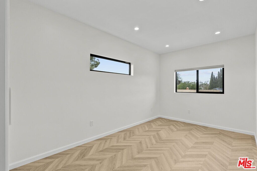 Newly built two story ADU offering approximately 940 sqft of thoughtfully designed living space with high end finishes throughout. This modern residence features 9+ ft ceilings, recessed lighting, and wide plank herringbone style flooring that create a bright and spacious atmosphere. The open concept main level flows seamlessly into a custom designed kitchen with sleek cabinetry, quartz countertops, designer backsplash, and premium stainless steel appliances including a full size refrigerator, range, microwave, and dishwasher. Contemporary fixtures and clean lines give the home a refined, upscale feel rarely found in rental properties. Both bedrooms include custom built closets with generous storage. The bathrooms are appointed with designer tile, frameless glass shower enclosure, matte black accents, and elegant gold fixtures. In unit stacked washer and dryer included for added convenience. This ADU is attached to the main house and features its own separate entrance. The front yard area designated for the ADU is separated from the main residence, offering distinct outdoor space for tenant use. Owner pays for water, gas, electricity, and trash pickup. Owner can share WiFi service if tenant provides their own router and WiFi device. A rare opportunity to lease a newly constructed, high quality ADU that combines luxury finishes, functional design, and excellent utility savings. Please note that the stated lot size reflects the entire property. No separate lot size or land measurement is available for the ADU. MLS# 26651679