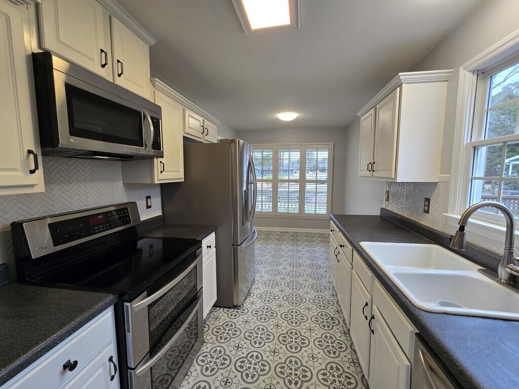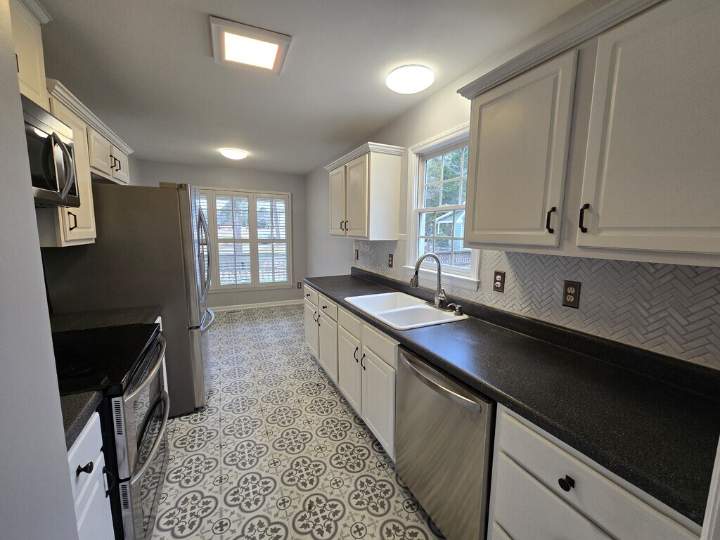 Now Available – Single Family Home on Ligon Mills just minutes from the convenient of US 1, Shopping & Restaurant in Wake Forest, Minutes from Downtown Wake Forest! A beautifully designed 3-bedroom, 2.5-bath with a 2 Car Garage w/ driveway large fenced in yard with a finished deck. YARD MAINTENACE INCLUDED!! NO HOA!! >Interior Features: Recent fully painted walls, crown molding and chair railing. Beautiful Laminate Hardwood floors throughout home. Gas Fireplace in the Living Room Modern eat in kitchen with granite countertops, stainless steel appliances. 4 windows, white upper and lower cabinets, 3 overhead LED light fixtures, energy efficient LG appliances (microwave, large capacity refrigerator, 5 burner smooth glass top and dual oven), brand new dishwasher, new tile floor in grey Mediterranean pattern, new garbage disposal, double porcelain sink and white custom plantation shutters. Washer & dryer included for added convenience in a 1st Floor Laundry room Two additional bedrooms each with ceiling fans, blinds, closets & hallway Full Bathroom Master Bedroom: Spacious owner's suite with tray ceiling, ceiling fans, blinds, walk-in closets, and ensuite bath featuring dual vanity and a walk-in shower HIGHLIGHTS of the Master Bathroom, double independent vanity sinks with marble tops. Great Overhead Lighting! Painted blue with white beadboard, deep soaking Kohler tub/shower surrounded by white subway tile with blue glass tile border and tile cutout for bath products. Pottery Barn medicine cabinet, chrome light fixtures, towel rack over toilet, heated towel bar, heated white and blue ceramic tile floor, solar tube. Dual Zone HVAC System new in 2024 Tankless Water Heater for endless hot water >Minimum Credit Score of 620+ >Security Deposit: Equal to 1-2 month's Rent >Minimum 12+ month lease >Pet policy: Restrictions apply >Tenant responsible for utilities NEUSE RIVER ASSET MANAGEMENT LLC Office Equal Housing Opportunity Firm Application Link: