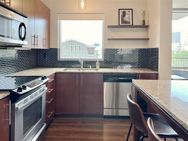 **Urban Oasis with Dallas Skyline Views** Experience urban living at its finest with this beautifully updated 2-bedroom, 2-bath condo in the heart of Dallas. Boasting over $25K in modern upgrades, this stylish residence offers panoramic views of the city skyline from its expansive floor-to-ceiling windows, complete with electric shades. Step inside to find a contemporary open-concept design complemented by luxury plank vinyl flooring and impressive 10-foot ceilings with exposed pillars. The sophisticated kitchen features stainless steel appliances, floating shelves, and a pantry with a stackable washer and dryer. The primary suite is a true retreat, complete with custom-built-ins, a brick feature wall with reading lights, a large walk-in closet, and a spa-like bath. Versatile and functional, the secondary bedroom includes a custom queen-size Murphy bed. A private balcony overlooking a serene pool area enhances the home's allure. Enjoy secure parking with two side-by-side spots, a community pool, fire-it and BBQ area. Comes semi-furnished if desired! Close to shopping, dining and major highways.