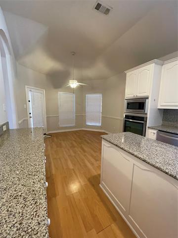 Great family home on corner lot. Exceptional Plano schools. Wood look flooring throughout. Primary suite and 1 additional bedroom in the first floor with 2 full baths. Three additional bedrooms and bath upstairs. Large dining room and living area off the entry, island kitchen with loads of cabinets and gas cook top are next to the breakfast room. Large den downstairs with fireplace and windows to the fenced back yard. Covered patio is perfect for entertaining.