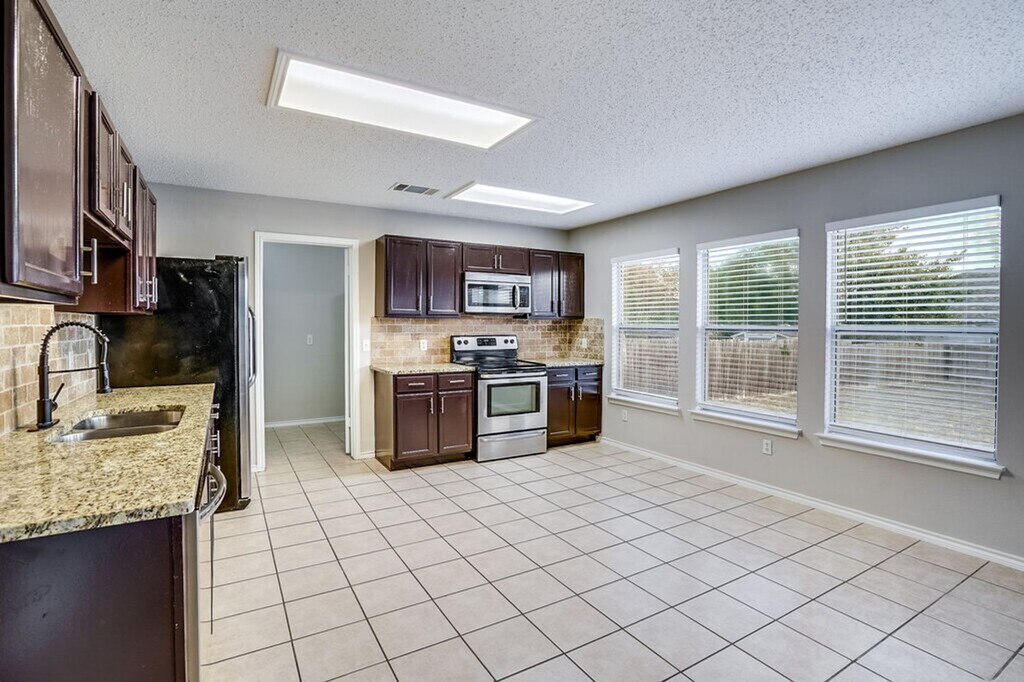 Welcome to 1001 Howell Terrace Place, a stunning 2-story home nestled in the heart of Round Rock, TX. This home boasts 3 spacious bedrooms and 2.5 bathrooms, offering ample space for comfort and convenience. The large open kitchen, equipped with granite countertops and an abundance of cabinetry, is a chef's dream. The home features vinyl plank and tile flooring throughout, adding a touch of elegance and easy maintenance. The large, fenced backyard is a great space for outdoor activities or simply enjoying the Texas sun. The home also includes a laundry room, a 2-car garage, and a shower/tub combo in the bathrooms. Central heating and cooling ensure year-round comfort, while window coverings provide privacy. The home is bathed in natural light, creating a warm and inviting atmosphere. Come and experience the charm that your next home has to offer!