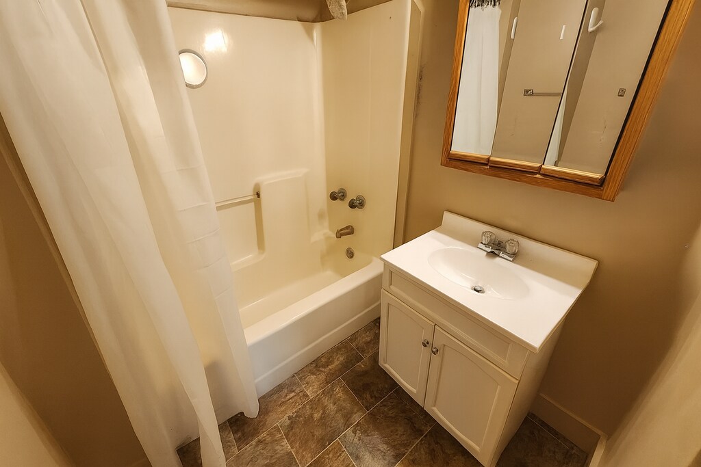 “First-floor efficiency apartment with combined living/sleeping area and private bath. Rent is $500/month; tenant responsible for electric, other basic services included in rent. No laundry in unit; street parking available.”