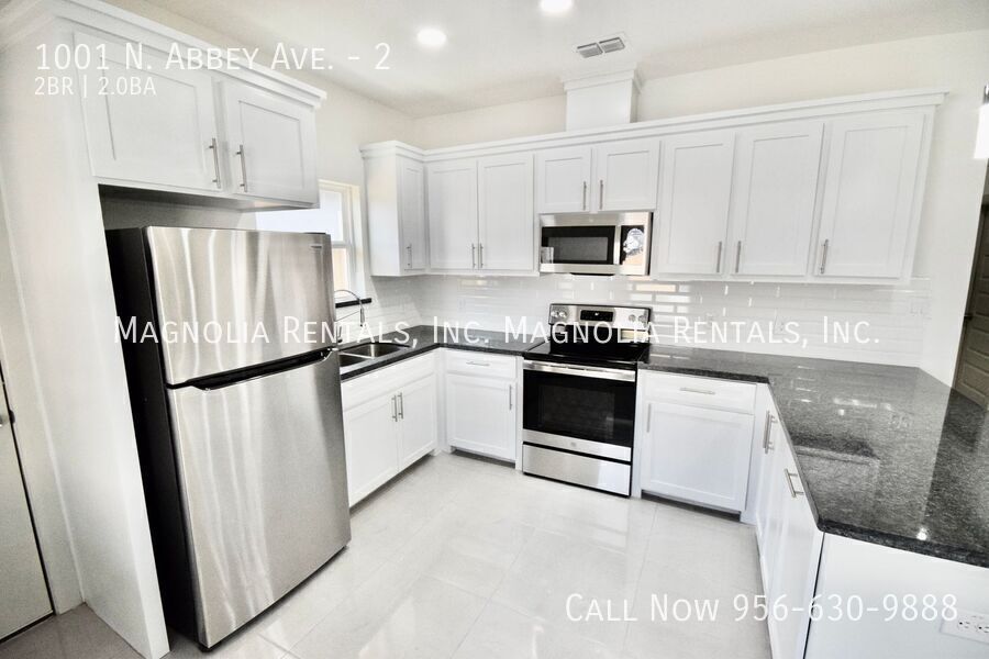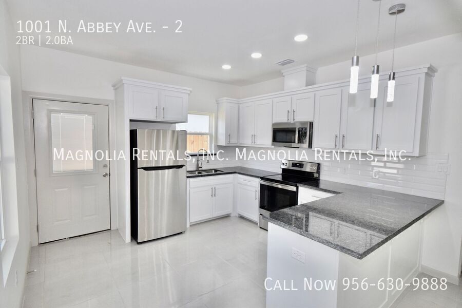 1st Month Free with 13 Month Lease Welcome to 1001 Abbey, located in the vibrant city of Edinburg, TX. This modern 2-bedroom, 2-bathroom apartment boasts an open floor plan with high ceilings and vaulted ceilings, creating a spacious and airy atmosphere. The living room is perfect for entertaining guests, while the walk-in closet provides ample storage space. Enjoy the convenience of stainless steel appliances, including a stove/oven, refrigerator, and microwave, as well as modern fixtures throughout. Stay comfortable year-round with central AC and covered parking. Washer and dryer are included for added convenience. This property is pet-friendly with breed restrictions, and tenants will appreciate the included water, trash, and lawn care services. With 24/7 maintenance support, you can rest easy knowing any issues will be promptly addressed. Don't miss out on this opportunity to lease a beautiful apartment in a gated community. Contact us today to schedule a tour! 12 Month Lease 24/7 Maintenance Support Back Unit Central Ac Modern Fixtures Pet Friendly With Breed Restrictions Water And Trash Water And Trash Included
