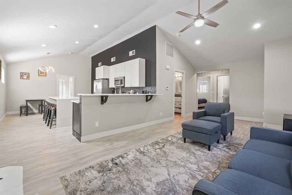 Welcome to Shamrock Stay, a charming duplex nestled in the heart of Boise! This artfully decorated home offers enough space for up to 6 guests. Feel at home in this 3-bedroom, 1-bath property. Whether you're whipping up a meal in the spacious kitchen or relaxing by the backyard fire pit, you'll find comfort and style at every corner. Well-behaved pets are allowed with a fee of $50 per pet per stay. Located near a scenic bike path, it’s perfect for exploring the area. Late check-outs beyond 30 minutes without prior approval will incur a $300 fee. Parties, events, and unauthorized gatherings are strictly prohibited and violation may result in immediate termination of the reservation without a refund and an additional cleaning or disturbance fee. Smoking inside the home will result in a $250 cleaning fee. Only guests included in the reservation are permitted on the property unless approved in advance; additional unregistered guests may incur a $100 per person per night fee. Quiet hours are from 10:00 PM to 8:00 AM. Tampering with security devices is strictly prohibited and will result in cancellation without refund. Guests are responsible for any damage beyond normal wear and tear. Outdoor-only security cameras are in use for the safety of guests and the property, and there are no cameras inside the home. Pets must be leashed outdoors due to the small, fenced yard. [SI]