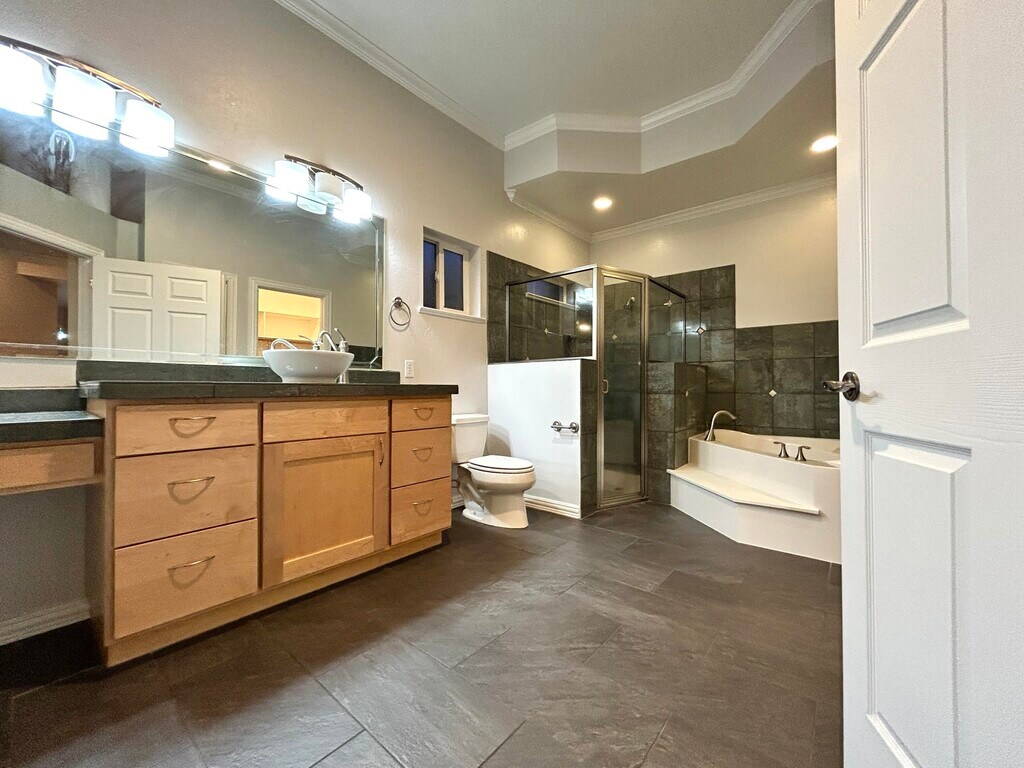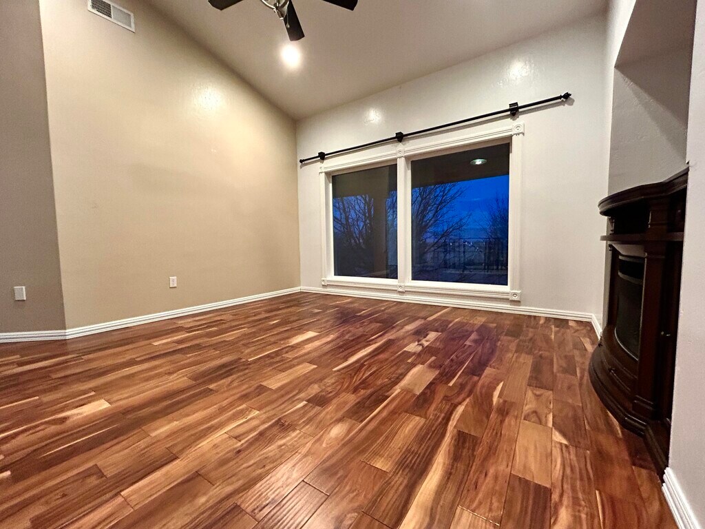 Beautiful 5 bed,3 full bath home with over 3,200 sq ft of living space. Features a gourmet kitchen with high-end appliances and granite countertops,wood flooring,vaulted ceilings,crown molding,and abundant natural light. Two master suites (one up,one down),plus a bonus craft/flex room. Oversized 2-car garage and large shaded backyard. Conveniently located near I-25,grocery stores,shopping,and movie theaters.