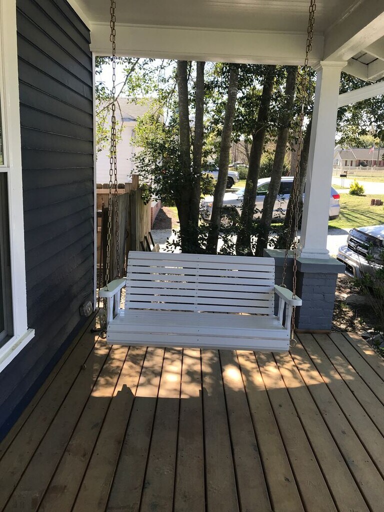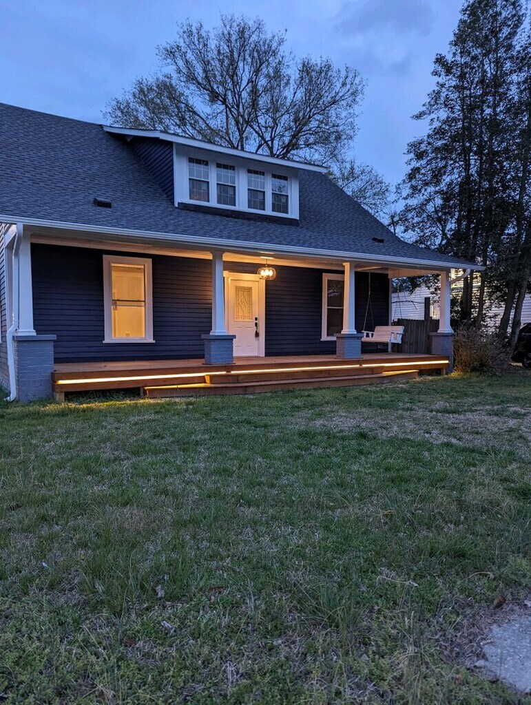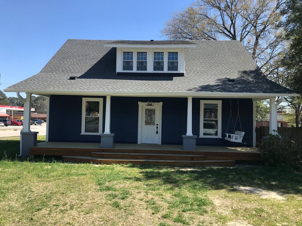 Built in 1910, this quaint 4 bedroom home sits on a corner lot, located a short walking distance to downtown Lillington. The home has been completely revamped and boasts LVP flooring throughout, newly painted walls in neutral tones, white baseboards, ornate vent covers and tasteful lighting and hardware fixtures. The home has two full baths, one downstairs and one upstairs. The primary bedroom is downstairs. Take the hand-crafted staircase with beautifully stained steps and black wrought-iron railing to the three additional bedrooms upstairs with roomy closet space including charming peek-a-boo walls. The kitchen boasts a decorative brick fireplace with mantle, original glass-front hanging cabinets and a center island with flat-top range. A microwave, dishwasher, refrigerator/freezer and wall insert gas convection oven and a double stainless steel sink with offset chandelier and canned/halo lights complete the cooking area. Located to the left of the back foyer is the "scullery" or utility room with an additional stove/range, freezer, washer and dryer and farmhouse sink with pulley and cable original windows overlooking spacious back yard, complete with a freshly pressure-washed deck, storage barn and a privacy fence. This property has a NO PET policy, however with a well-qualified applicant, the owner may reconsider but owner will have to approve the pet and tenant will sign a pet addendum and pay a $500 nonrefundable pet fee. Utilities are the responsibility of the tenant: Water, (Town of Lillington), Electricity, (Duke Progress), Gas, (Piedmont Natural Gas - for the convectional oven and forced air heating system), trash removal service and lawn care.