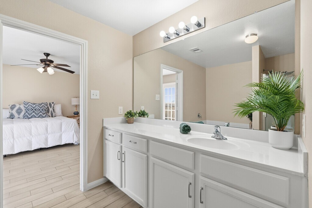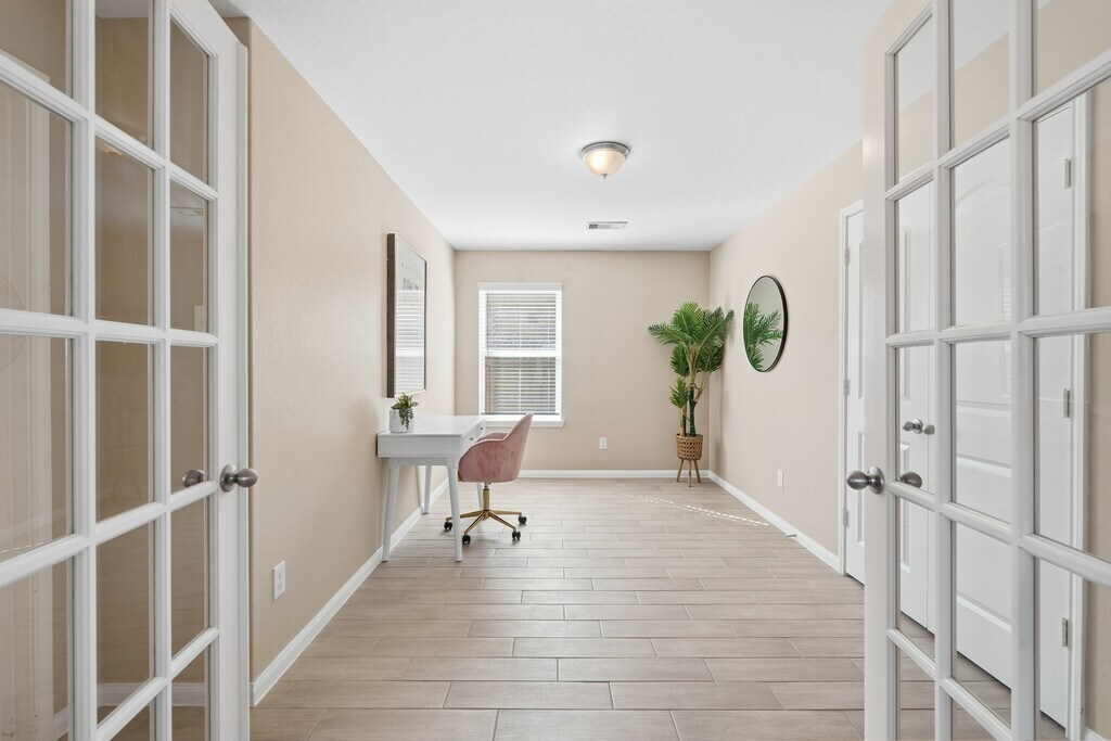 Like new! Gorgoue brick one story home with no back neighbors and waterfront/ water views! Home offers 3-4 Bedrooms with the option of a study or game room. Enjoy all tile wood floors throughout the home,high ceilings and 2 inch Faux Wood Blinds throughout! Primary bedroom with water views off the private back yard. Granite counters in the kitchen! So much natural light in this home! Extra long double wide drive with nice 2 car attached garage. Picky buyers will love this home. Minutes from I-10! MLS# 26048493