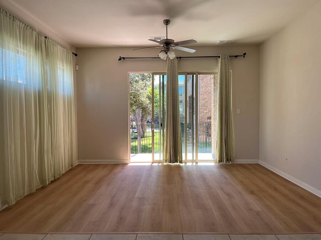GATED COMMUNITY! Refrigerator, washer, and dryer included!! Landscaping service is provided by the owner; tenants only need to use the sprinkler system and pay for water. Beautifully maintained 4-bedroom, 3.5-bath home located on a desirable corner lot in the sought-after Highland Horizon gated community. Enjoy extra privacy with no side neighbors! Zoned to Great Oaks Elementary (not Elsa England). This home features new interior flooring, new balcony flooring, and no carpet throughout! The primary suite is on the main floor for convenience. The eat-in kitchen offers built-in stainless steel appliances and opens to the spacious family room — perfect for entertaining.