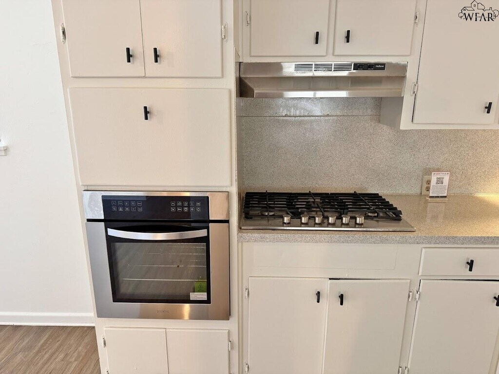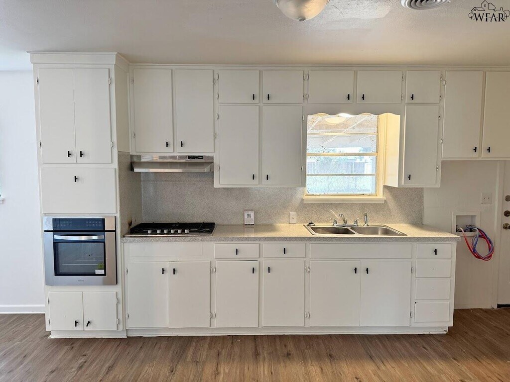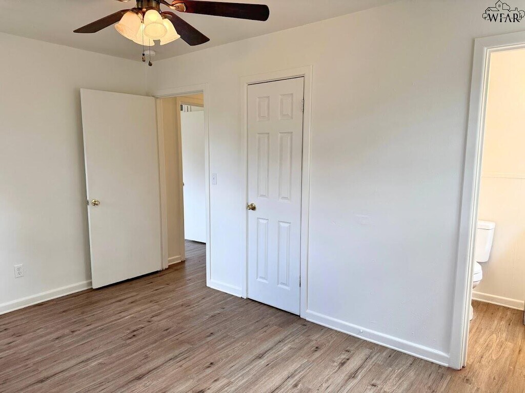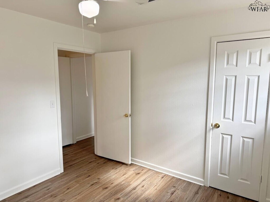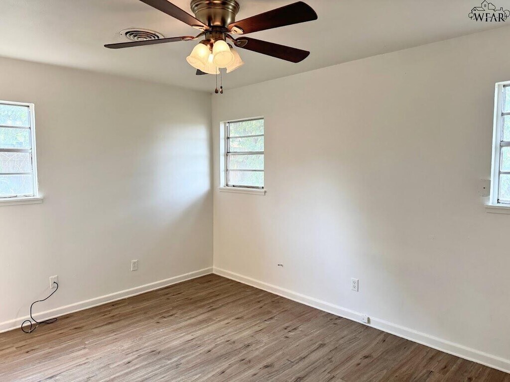 Welcome to 1001 W Beverly Loop, a charming 3-bedroom, 1.5-bathroom home located in Burkburnett, TX. This property has brand new paint throughout! Open kitchen, living, and dining area. Kitchen features plenty of cabinetry, a stovetop and built-in oven, a refrigerator, washer connections, and a pantry. Primary bedroom has a walk-in closet and en-suite half bath. Attached garage features a manual door, metal cabinetry, and the dryer connection. Large backyard is fully fenced with chain link.