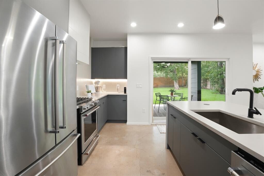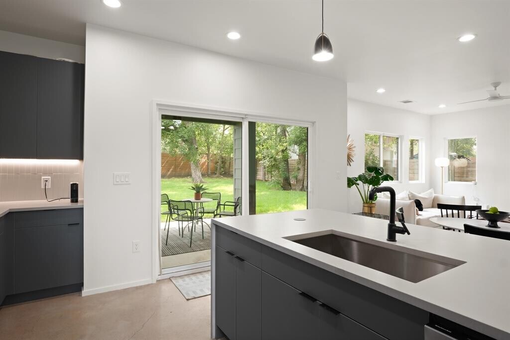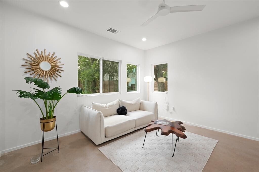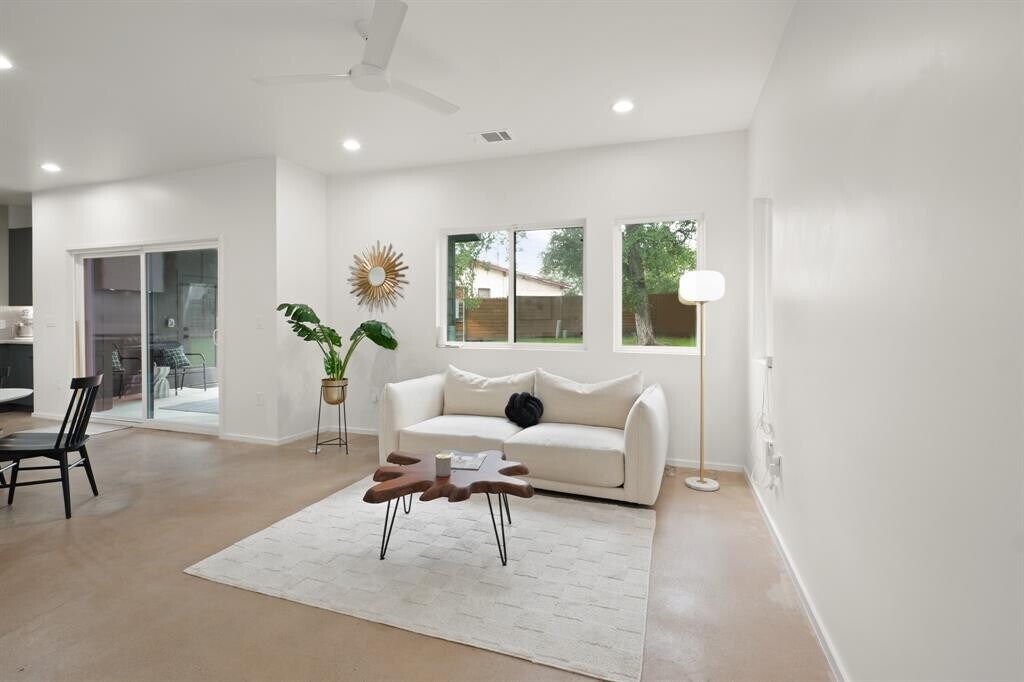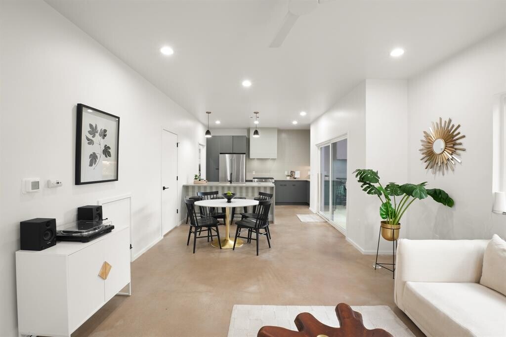 Discover your ideal urban retreat at 1001 Walter Street, Unit 2, situated in one of Austin's most beloved areas. This contemporary home features 2 bedrooms and 2.5 bathrooms, encapsulating a perfect blend of style and functionality. With a beautifully open floor plan and high ceilings, the home exudes a refreshing ambiance enhanced by abundant natural light and designer finishes. The living and dining areas flow seamlessly into a modern kitchen equipped with breakfast bar, stainless steel appliances, pantry storage and a stylish range hood. Concrete floors on the main level add a sleek touch, while hardwood floors upstairs offer warmth and elegance. Each bedroom comes with its own ensuite bathroom and generous closet space, with the primary suite featuring a walk-in closet, dual vanities and sizable walk-in shower. Embrace the outdoors in a spacious, TEXAS-sized backyard, which is rare for units of this size and style, perfect for entertaining or peaceful relaxation. The covered porch and private yard create a serene outdoor retreat, while a detached garage offers secure parking and ample additional storage space. Positioned near delectable eateries such as Nixta, Desnudo & Veracruz and just minutes to the scenic hike & bike trails at the Boggy Creek Greenbelt, this home offers both convenience and leisure. Experience the exceptional quality and craftsmanship firsthand, and imagine the memories waiting to be made in this exceptional property.
