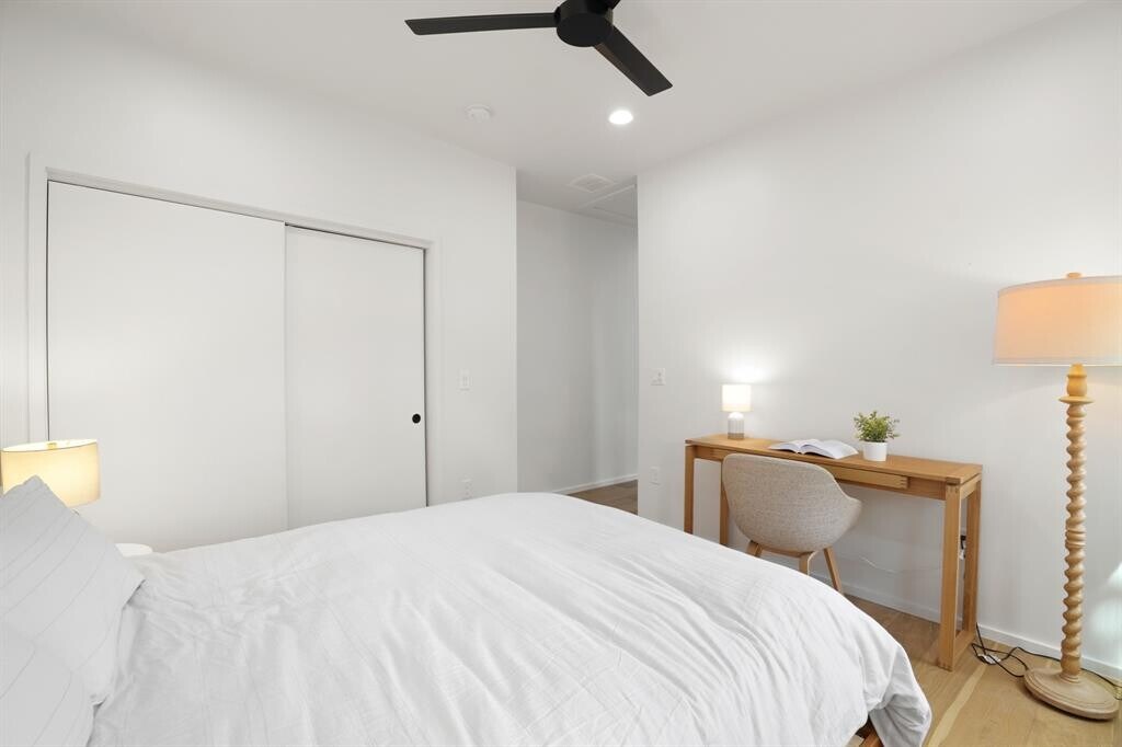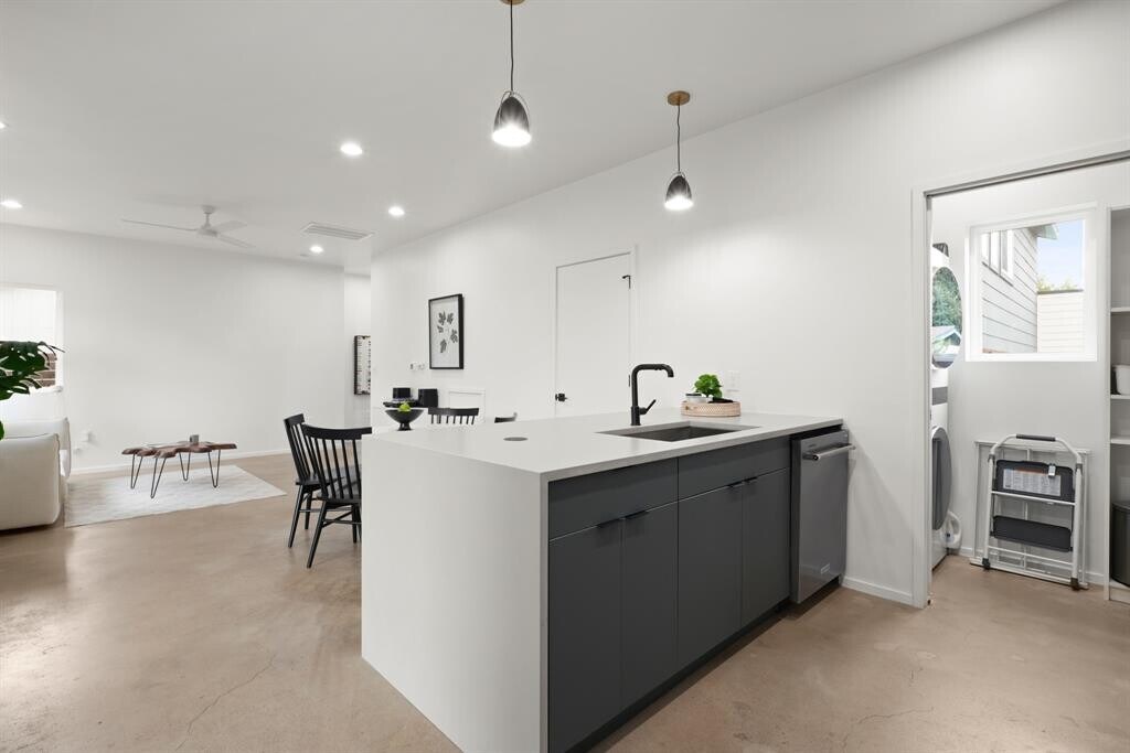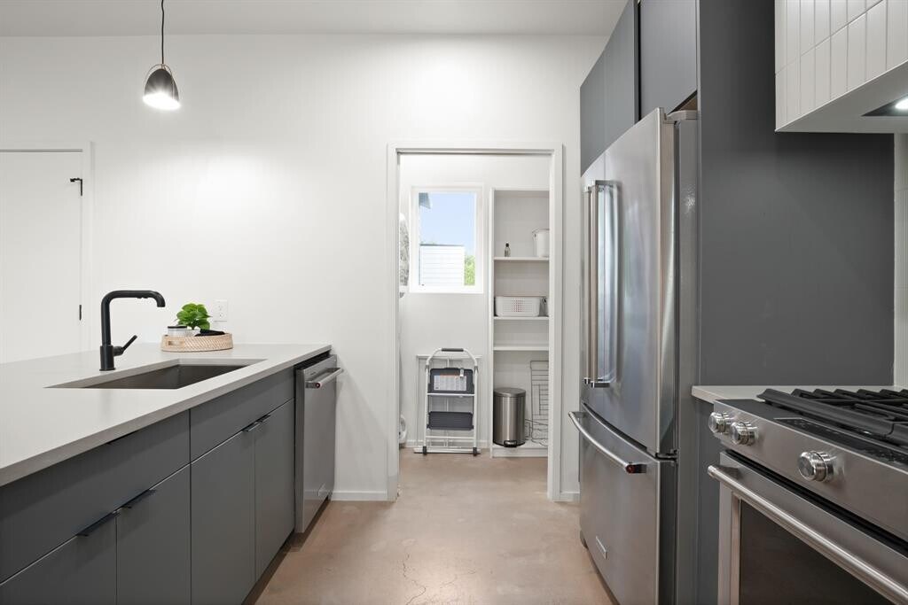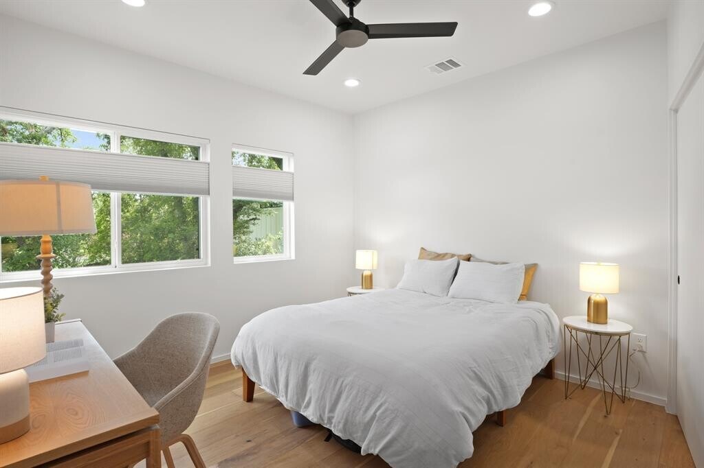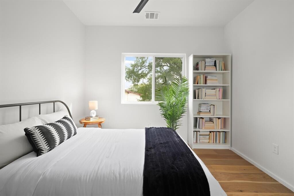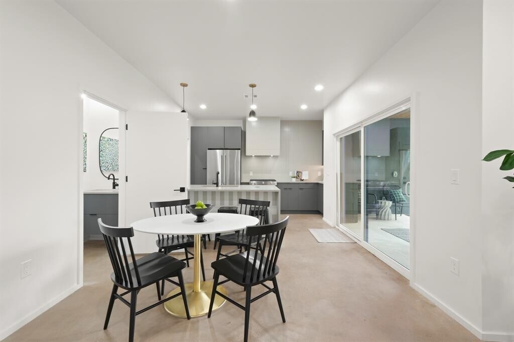 Discover your ideal urban retreat at 1001 Walter Street, Unit 2, situated in one of Austin's most beloved areas. This contemporary home features 2 bedrooms and 2.5 bathrooms, encapsulating a perfect blend of style and functionality. With a beautifully open floor plan and high ceilings, the home exudes a refreshing ambiance enhanced by abundant natural light and designer finishes. The living and dining areas flow seamlessly into a modern kitchen equipped with breakfast bar, stainless steel appliances, pantry storage and a stylish range hood. Concrete floors on the main level add a sleek touch, while hardwood floors upstairs offer warmth and elegance. Each bedroom comes with its own ensuite bathroom and generous closet space, with the primary suite featuring a walk-in closet, dual vanities and sizable walk-in shower. Embrace the outdoors in a spacious, TEXAS-sized backyard, which is rare for units of this size and style, perfect for entertaining or peaceful relaxation. The covered porch and private yard create a serene outdoor retreat, while a detached garage offers secure parking and ample additional storage space. Positioned near delectable eateries such as Nixta, Desnudo & Veracruz and just minutes to the scenic hike & bike trails at the Boggy Creek Greenbelt, this home offers both convenience and leisure. Experience the exceptional quality and craftsmanship firsthand, and imagine the memories waiting to be made in this exceptional property.