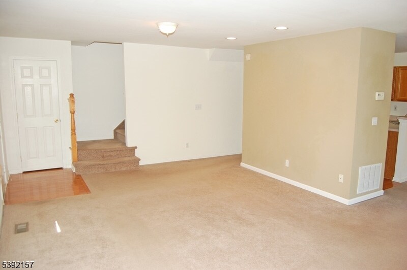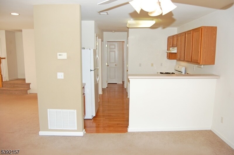 Boulder Ridge Townhouse. Spacious end unit with a daylight walk-out basement. This well-maintained home features an inviting kitchen with oak cabinetry, laminate countertops, hardwood flooring, and included appliances. The dining area is highlighted by a modern hanging light, while the living room offers recessed lighting and direct access to a private deck, perfect for relaxing or entertaining. The primary suite impresses with a cathedral ceiling, walk-in closet, and a private bath featuring dual vanities, a jetted soaking tub, and a separate shower. The second bedroom has its own hallway bathroom. And the convenient first-floor laundry area comes equipped with a washer and dryer (2021). The finished basement adds flexible living space with a full bath and sliding door leading to a private backyard, ideal for a family room, home office, entertainment area or in-law suite. Additional features include over 1,400 square feet of living space, 3.5 bathrooms, a one-car garage with a new garage door (2025,),and driveway parking for two vehicles, with guest parking across the street. The central heating and air conditioning system were replaced approximately five years ago, providing efficiency and peace of mind.Ideally situated between two shopping centers and close to major highways, bus, and train service, this home combines comfort, convenience, and accessibility. All within the Randolph School District.