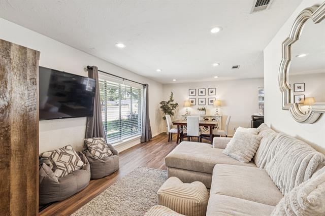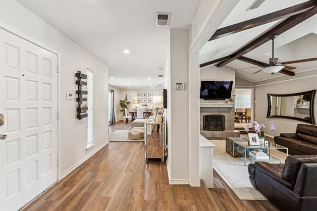 Welcome to 10010 Cromwell Drive, a spacious 4-bedroom, 3.5-bath home in the heart of Northwest Dallas. This residence offers an inviting and functional floor plan with multiple living areas, including a vaulted-ceiling family room that opens to the back patio and private yard. Hardwood-style flooring flows throughout, complementing the home’s modern updates and timeless charm. The bathrooms have been thoughtfully updated, and the home has undergone significant structural improvements for peace of mind, including added foundation piers, a replaced roof with reinforced roof structure, and complete PVC plumbing. Additional highlights include a two-car attached garage and a serene backyard setting that backs up to a beautiful greenbelt, offering privacy and views of nature. Move-in ready with quality updates and a prime location, this home presents an excellent opportunity to enjoy comfort, convenience, and lasting value in Dallas. Now available for 6-7 month lease.