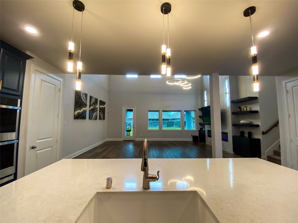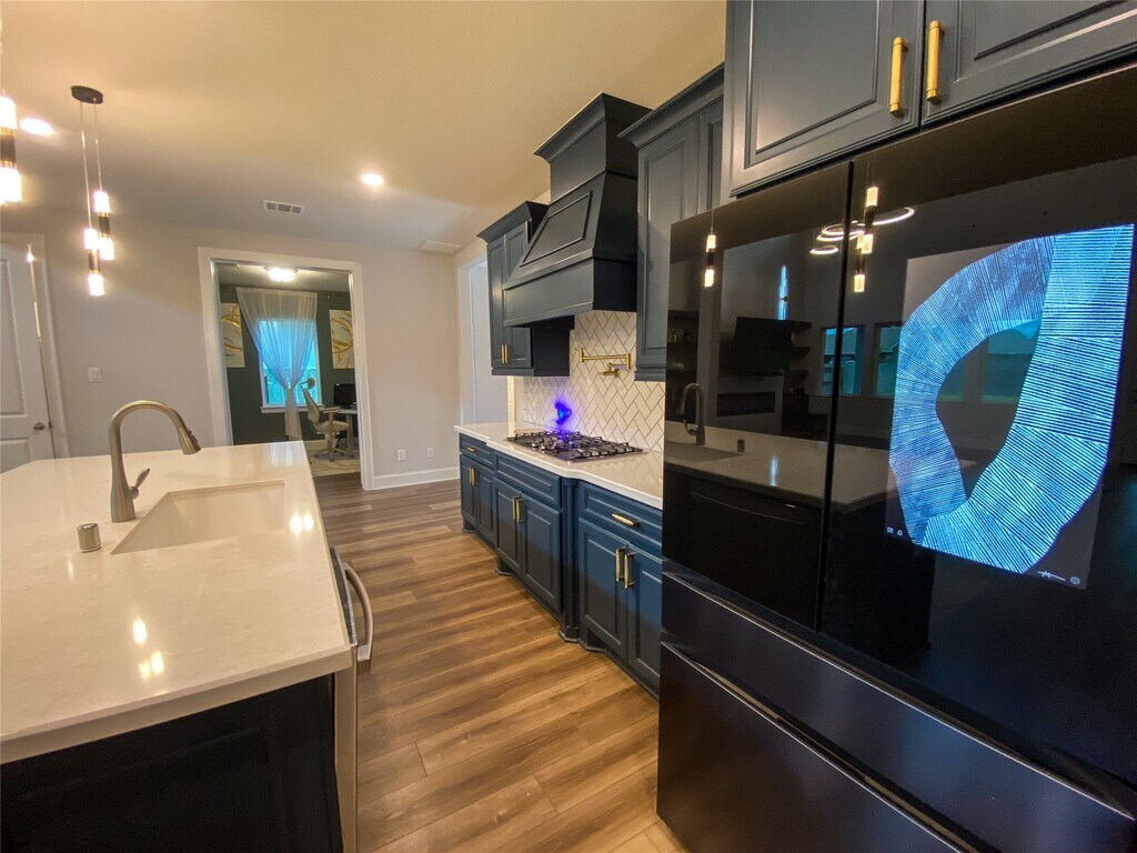 Sienna Stunner! Gorgeous 5-bedroom,4-bath home with high-end finishes and standout features throughout! Sleek contemporary chandeliers add artistic flair,while a central vacuum system ensures spotless floors and cleaner air. The openconcept chef’s kitchen boasts a large granite island,stainless steel appliances,pot filler,and custom soft-close cabinetry. The great room with contemporary high ceiling and a fully tiled fireplace wall,flows to a covered patio and oversized backyard— perfect for entertaining and pre-plumbed for an outdoor kitchen. Spacious secondary bedrooms all offer walk-in closets. The media room is pre-wired for 7.1 surround sound. The serene primary suite includes a lux bath with a free-standing soaking tub and separate shower. Just a 2-minute walk to a peaceful park/playground and walking distance to Alyssa Ferguson Elementary. This home blends luxury and everyday comfort like no other! Schedule a tour and thank me later MLS# 95509854