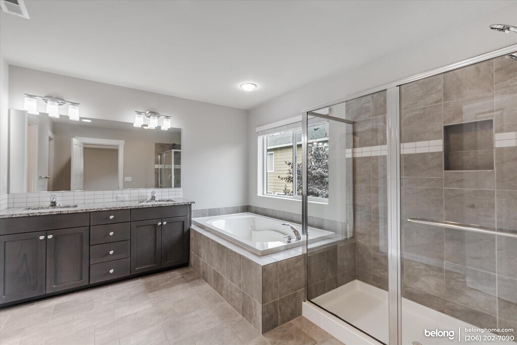 Come home to this brand-new, never-before-occupied 5-bedroom, 3-bathroom craftsman-style gem in the heart of Lake Stevens! Surrounded by a peaceful yet vibrant new community, this home offers the perfect balance of privacy and convenience. Step inside to find hardwood floors in the living room that exude warmth and charm. The spacious kitchen stands out with a generous center island, subway-tile backsplash, stainless steel appliances, and ample cabinetry. Whether you're hosting guests or enjoying a quiet morning, this kitchen delivers functionality with flair. Each of the five bedrooms is fully carpeted, creating a cozy atmosphere, while the spacious primary suite features a luxurious ensuite bathroom with a double-sink vanity, step-in shower, and a relaxing soaking tub, offering the ideal spot for unwinding at the end of the day. Up to two pets are welcome in this beautiful home, making it a great fit for the whole family. Practical conveniences include a laundry area and an attached 2-car garage with automatic door. Enjoy the perks of being minutes from Frontier Village for shopping, as well as the swimming beach and boat launch at Willard Wyatt Park. Commuters will appreciate the quick access to WA-2, WA-9, and I-5, making travel to major employers like Boeing and Providence Hospital a breeze. Located in the Lake Stevens School District and surrounded by recreational opportunities, this pristine home offers a fresh start and a fantastic lifestyle.