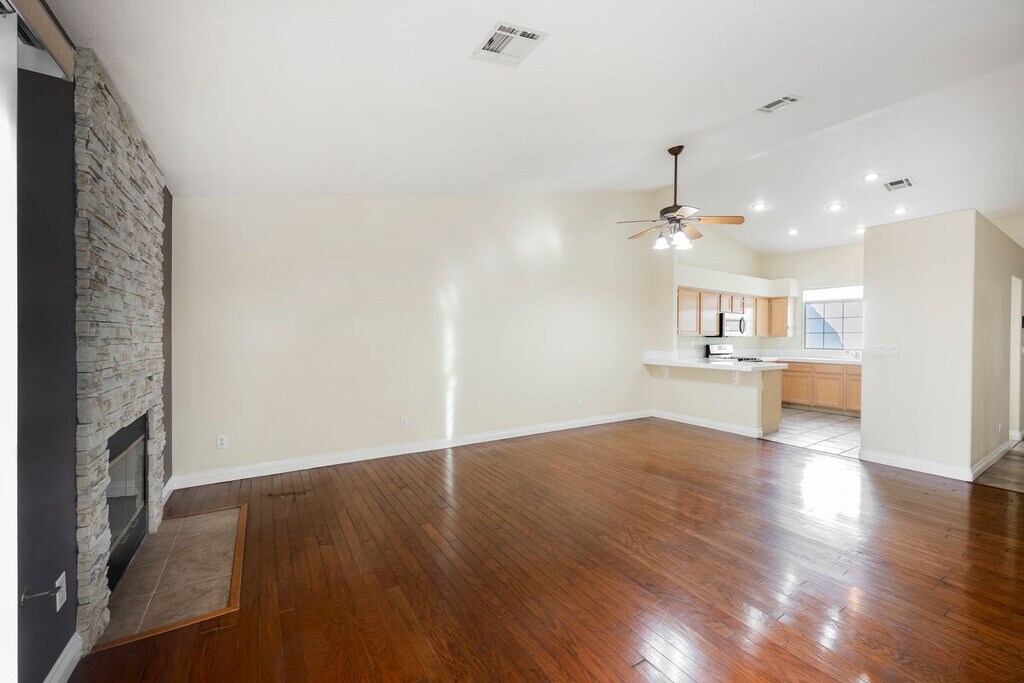 Immaculate One-Story Townhome! Located in a gated community that includes a community pool and spa. This charming 2 bedroom Summerlin retreat offers a super clean, open-concept design, ready to be your new home, with light filled elegant bedrooms. The spacious living room boast a beautiful stone fireplace with vaulted ceilings that creates a perfect setting for relaxation. Hardwood floors through out the living and dining rooms. Kitchen features modern stainless steel appliances. The 2 car garage is attached with entry into your home. Home is located close to schools, shopping and fwy.