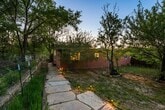 This beautiful cottage is located in a quiet area inside of Espanola city. It is situated at the back of a group multi-house property, in a peaceful setting, with an acequia (water canal) running just behind the house. There is room for a garden, with a private, fenced in yard, and large south-facing windows to bring warmth and light to a spacious living room. The acequia provides a soothing stream sound when it runs on special days in the summer. The cottage opens into an open plan combined kitchen/dining room which could be used as an office. One cozy bedroom is situated at the back of the house, next to a full bathroom with a skylight and bathtub. Tile floors and setting make the cottage warm in the winter and cool in the summer. Gas heater keeps cottage warm throughout the winter; window AC unit to cool in the summer. This is a very private house where neighbors are near but not seen from the windows. Instead you'll feel like you are in your own peaceful sanctuary with two private yard areas. Quiet area with friendly long-term neighbors. A small garden shed along with designated parking is included. The property is within easy reach of Los Alamos, Santa Fe and Taos, in Espanola City, off State Road 76. City water, trash, electricity and gas utilities are charged at a flat rate of $250/month, added to the rent. Long term tenant - minimum 1 year lease. One small pet maximum with additional $30/mo pet fees. No pitbulls or large dogs. There is no smoking allowed on the property, even outside. Please call or text for more information.