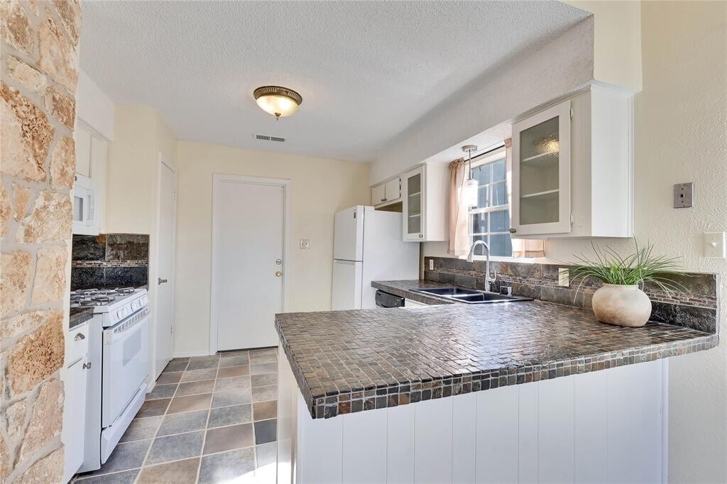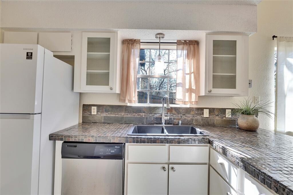 Beautifully updated stone home just 20 minutes from downtown Austin and close to all that South Austin has to offer! Recently repainted with fresh paint throughout, this home features stained concrete floors—no carpet! The kitchen is equipped with solid stone countertops, a gas range/stove, a built-in microwave, and a dishwasher. Enjoy vaulted ceilings in the living room and primary bedroom, a stone fireplace for added charm, and an attached full bath with a walk-in shower and walk-in closet. The spacious backyard boasts a large deck shaded by mature trees, plus a separately gated side yard—perfect for a dog! Google Fiber is available. Washer and dryer included. Income requirement is 3x the monthly rent. MLS ID 5612842