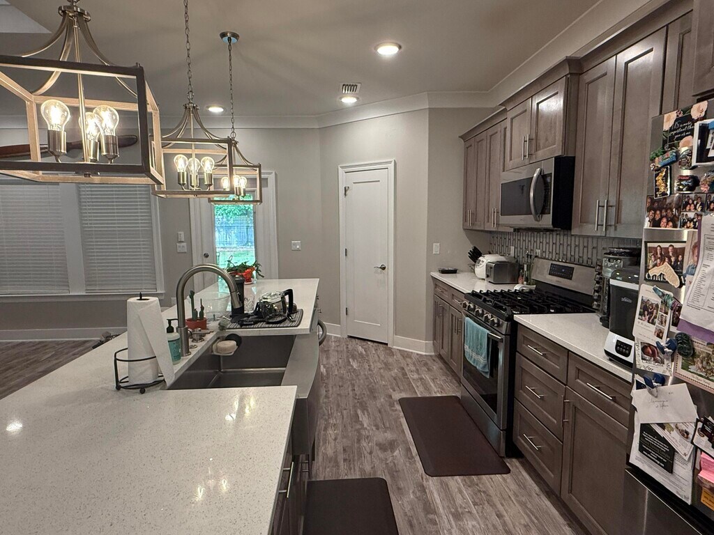 This newer, all-brick home in Fort Walton Beach offers 4 bedrooms and 3 bathrooms, combining modern design with high-end finishes throughout. Conveniently located just minutes from military bases, beautiful beaches, and local shopping, this home provides both comfort and accessibility.Designed with an open-concept layout, the home features soaring 9- and 10-foot ceilings and luxury vinyl plank flooring that runs seamlessly throughout the entire space. The spacious bedrooms and three full bathrooms are thoughtfully designed, complemented by a custom lighting package with energy-efficient LED fixtures that enhance the home's bright and inviting atmosphere.The kitchen is a true centerpiece, showcasing a stunning 12-foot center island, quartz countertops,