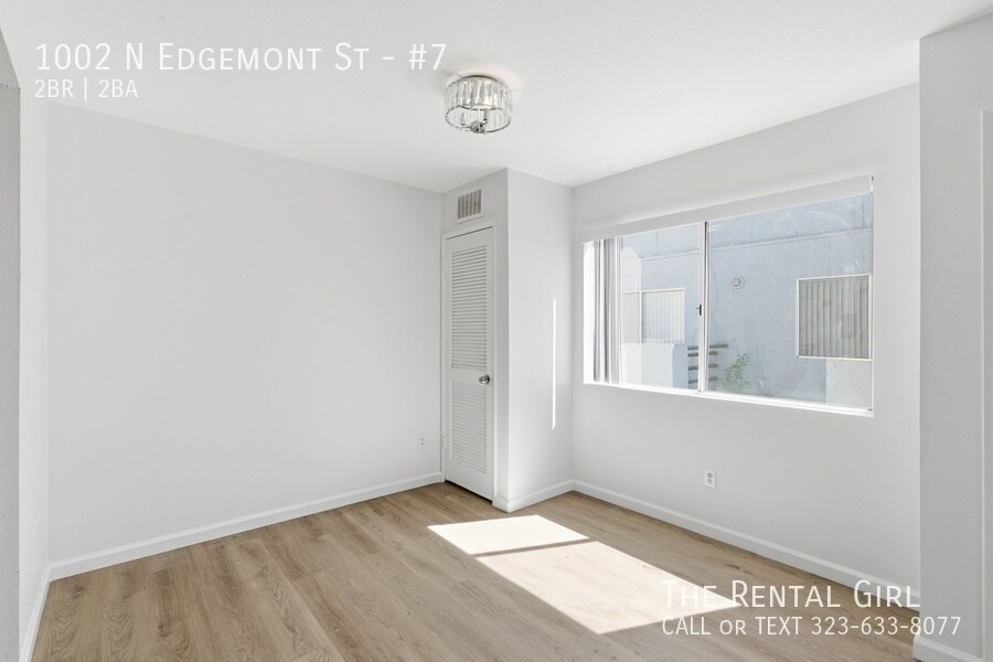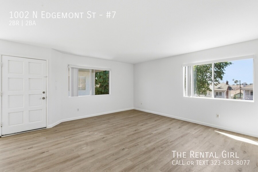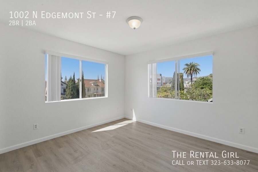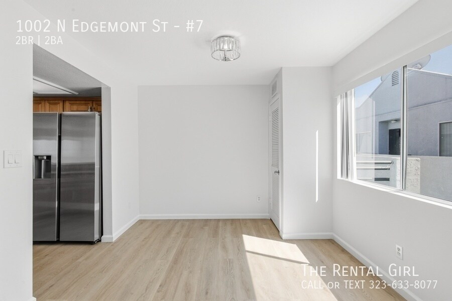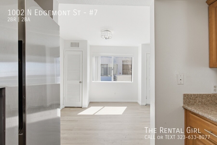 This freshly updated building has a crisp, clean feel with a bright white exterior, and this top-floor unit is filled with the kind of natural light that instantly lifts your mood. Step inside to a spacious living area lined with windows, creating an open, airy vibe that feels both calm and expansive. There’s plenty of room to set up a true living and dining space, plus a charming breakfast bar that keeps things casual and connected. A brand-new fridge will be provided, too. Both bedrooms are generously sized and can easily accommodate a California King without sacrificing flow. The primary bedroom offers two large mirrored closets and an en suite bathroom with a deep soaking tub, ideal for winding down at the end of the day. Sunlight moves beautifully through the home, giving each room a warm, welcoming energy throughout the day. Add your own textures, soft curtains, maybe a few plants, and it all comes together effortlessly. Location-wise, you’re right at 1002 N Edgemont in one of those perfectly central pockets. Close to Larchmont Village, Los Feliz, and East Hollywood, with easy access to the 101 when you need to get across town. Morning coffee at Go Get Em Tiger or Café Telegrama, brunch at Sqirl or Clark Street Bakery, and endless dinner options from Thai Town favorites to spots like Ggiata, Found Oyster, and Osteria La Buca just minutes away. It’s one of those neighborhoods where everything you need is within reach, but it still feels relaxed and livable. Close to studios, creative spaces, and some of LA’s best neighborhood gems, this is an easy place to land and make your own. Come see it before someone else claims your sunlight. Contact Lindsay to tour today!
