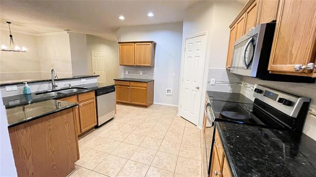Immaculately maintained 3-bedroom, 2 bathroom zoned for Mansfield ISD! Welcome Home to an inviting space that combines efficiency, comfort and style! Enjoy a thoughtful layout designed to give plenty of room for everyday living or entertaining. Enter into the home and you'll find a large open space where living room, dining room and kitchen flow together seamlessly. The large open kitchen is sure to keep any chef happy, adorned with an abundance of cabinet and counter space, walk in pantry, black and stainless appliances! The dining area is great for gathering around the table, while the kitchen breakfast bar gives an option for a more casual eating space. The kitchen opens to the living area, creating a sense of inclusion between the two spaces. Primary bedroom sits at the rear of the home and has views of the lush large backyard. The en suite bathroom was designed with comfort and relaxation in mind, offering a deep soaking tub, an oversized shower, dual sink vanity and great walk-in closet. Secondary bedrooms are set toward the front of the home, giving maximum privacy to the primary suite. All bedrooms are sizeable, and all have generous closet space. Attention to the details make this home spectacular. Modern finishes, lots of windows and natural light, hard flooring throughout add to the aesthetic appeal, and ceiling fans in living room and all bedrooms provide added comfort! Relax in the backyard under the covered patio OR on the covered front porch, both perfect for enjoying the outdoors in any kind of weather. Yard gives plenty of space for play, entertaining, soaking up the sun, or gazing at the stars. For more outdoor fun, the community amenities include a pool, playground, and greenspaces! Home is in an ideal location, with easy access to highways, shopping, dining and green spaces. Well rated Mansfield ISD. Come view today!