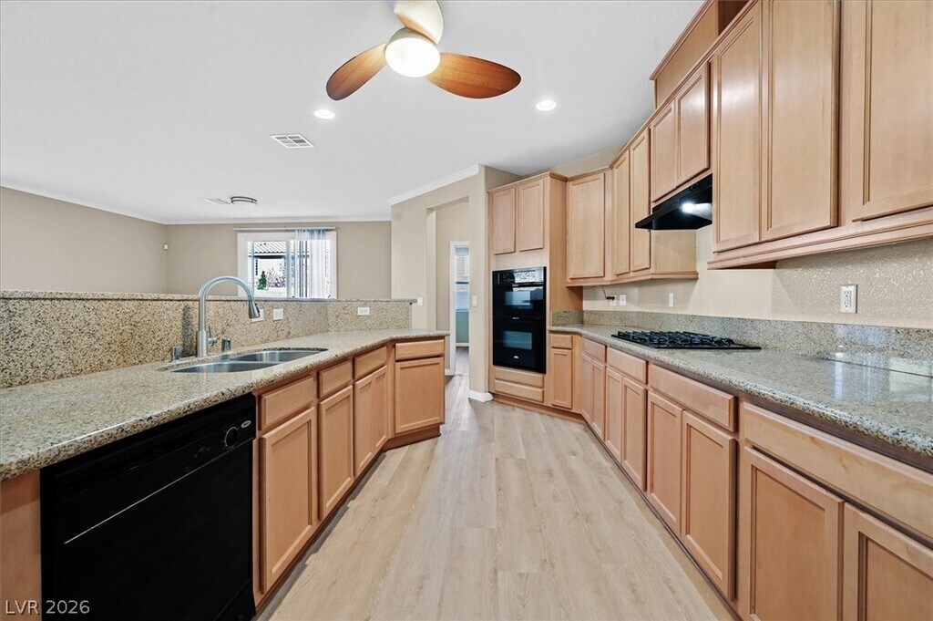 Beautiful and cozy one-story home located in the desirable Mountain’s Edge community. Features an open floor plan with the primary bedroom separate from the other two bedrooms for added privacy. The kitchen includes granite countertops and a breakfast nook. Brand-new flooring throughout the home and low-maintenance landscaping. This home is a must see!