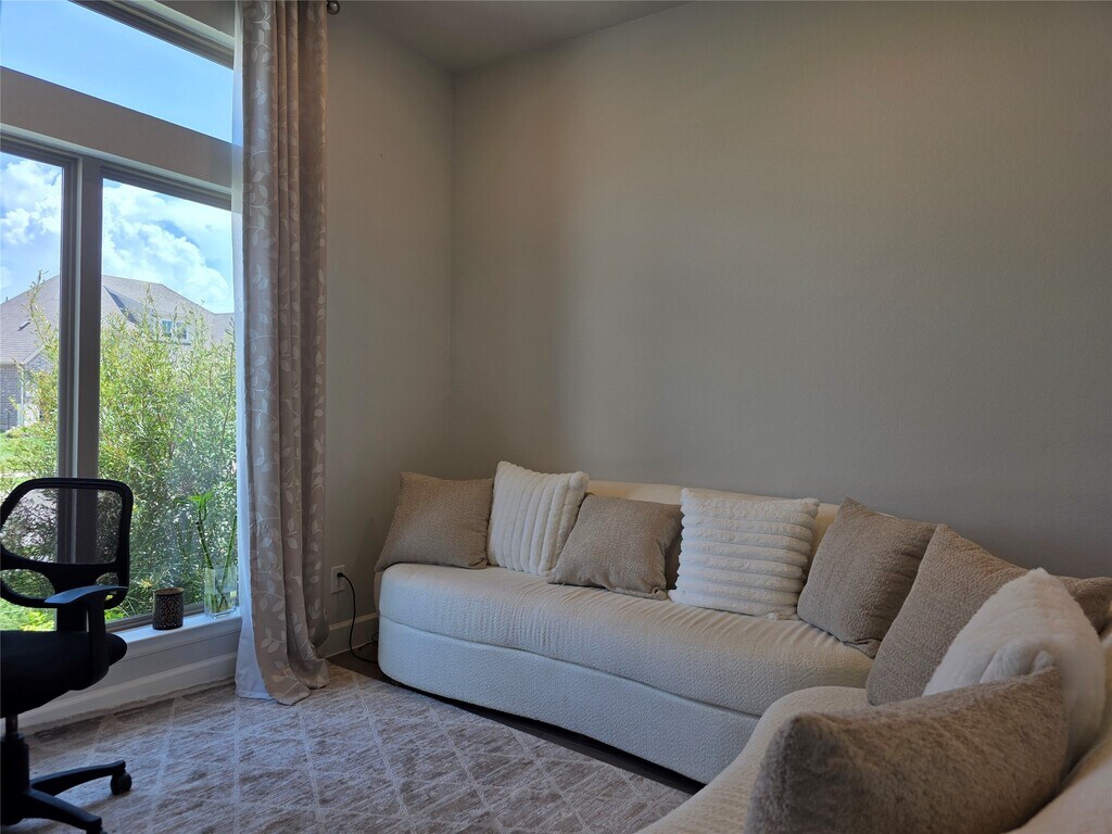 David MazzarellaAppliances included! Step into this elegant home with a grand home office featuring French doors and high ceilings. The open concept layout flows seamlessly from the extended entry to the large kitchen with granite countertops and a spacious island. Enjoy the cozy family room with a wood mantel fireplace and a wall of windows. The primary suite is a retreat with a luxurious bath and two walk-in closets. A guest suite adds extra comfort to this one-story gem. Step outside to the covered patio and admire the extended backyard. This home is perfect for those who appreciate quality craftsmanship and thoughtful design.