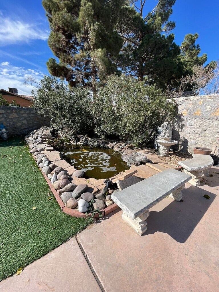 Discover this stunning 4-bedroom, 4-bathroom home located in the heart of Eastridge, one of El Paso's most sought-after neighborhoods. This east-side gem offers the perfect blend of comfort and convenience. This home features four generously sized bedrooms, four bathrooms, a double car garage for secure parking and extra storage. A large yard with artificial grass which is perfect for gatherings, outdoor play, or simply relaxing under the Texas sky next to a koi pond. Located in a neighborhood famous for its location and walking distance to Eastwood High School and Eastwood Knolls International School. This home offers easy access to I-10 and is just minutes from Fort Bliss and other key amenities, like Cielo Vista Mall and The Fountains at Farrah outdoor shopping mall with multiple restaurants and stores. This property combines comfort, charm, and accessibility, making it ideal for families or anyone looking for a beautiful place to call home. Whether you're hosting gatherings or exploring the vibrant city of El Paso, this home is perfect for you. Don’t miss out on this fantastic opportunity! Contact us today to schedule a viewing.