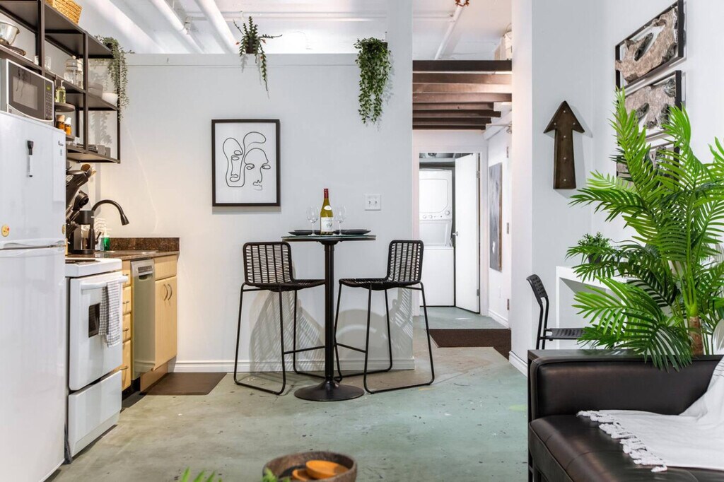 Experience the heart of downtown Edmonton in this unique loft located in the historic Cambridge Lofts building. Just minutes from the Ice District, Shaw Centre, Brewery District, and Grant MacEwan University, this centrally located loft offers high ceilings and urban living vibes, perfect for short-term or long-term stays. Enjoy easy access to the LRT and Pedway, and feel at home with self check-in, fast Wi-Fi, and an equipped kitchen. Welcome yourself inside this cozy and artsy 1-bedroom, 1-bathroom loft. With high ceilings and urban living vibes, experience unique downtown living at its finest. Enjoy reading a book or watching your favorite shows with access to a Smart TV and fast Wi-Fi. The fully stocked kitchen is perfect for days you choose to stay in from exploring Edmonton. The suite comfortably sleeps two with a queen-size bed and includes a full sparkling clean bathroom with complimentary toiletries. There is no parking included with your reservation. The building does not have a parkade, but paid street parking and private parking options are available nearby. Early check-in or late check-out is available for a $30 fee with prior approval to accommodate extra staff. Get ready to experience the best of downtown Edmonton with Cambridge Lofts' prime location. You'll have easy access to everything you need, whether it's a show at Rogers Place, the Citadel or Winspear theatres, a stroll through the Alberta Legislature grounds, or a quick grocery run. Explore the local scene with unique shops, friendly cafes, and delicious restaurants all within walking distance on Jasper Place or the Brewery District. Bike, walk, jog, or segway around the scenic trails along the North Saskatchewan River in the beautiful river valley. This is a non-party home. Parties, events, or large gatherings are not permitted under any circumstances. Evidence of a party will result in immediate cancellation of the reservation without a refund. No smoking of any kind is allowed, and a $250 fee will be charged if the property smells of smoke or if there is evidence of smoking inside. Quiet time hours are between 10 PM and 8 AM. No pets are allowed in the home. The maximum occupancy is two people, and any additional guests without permission will be vacated for trespassing. A late check-out fee of $50 will be applied if you have not vacated the property 30 minutes after the 11 AM check-out time unless prior permission is granted. If check-out is more than two hours late, you will be charged for an additional day at the base nightly rate, but this does not allow you to stay for the additional day as it could impact other reservations. Whether you want to relax, read a book, take a nap, or get some work done at the office nook, this home has everything you need to enjoy your visit. Complementary Wi-Fi, tea, and coffee are provided. Registration Number: 475800564-001 [SI]