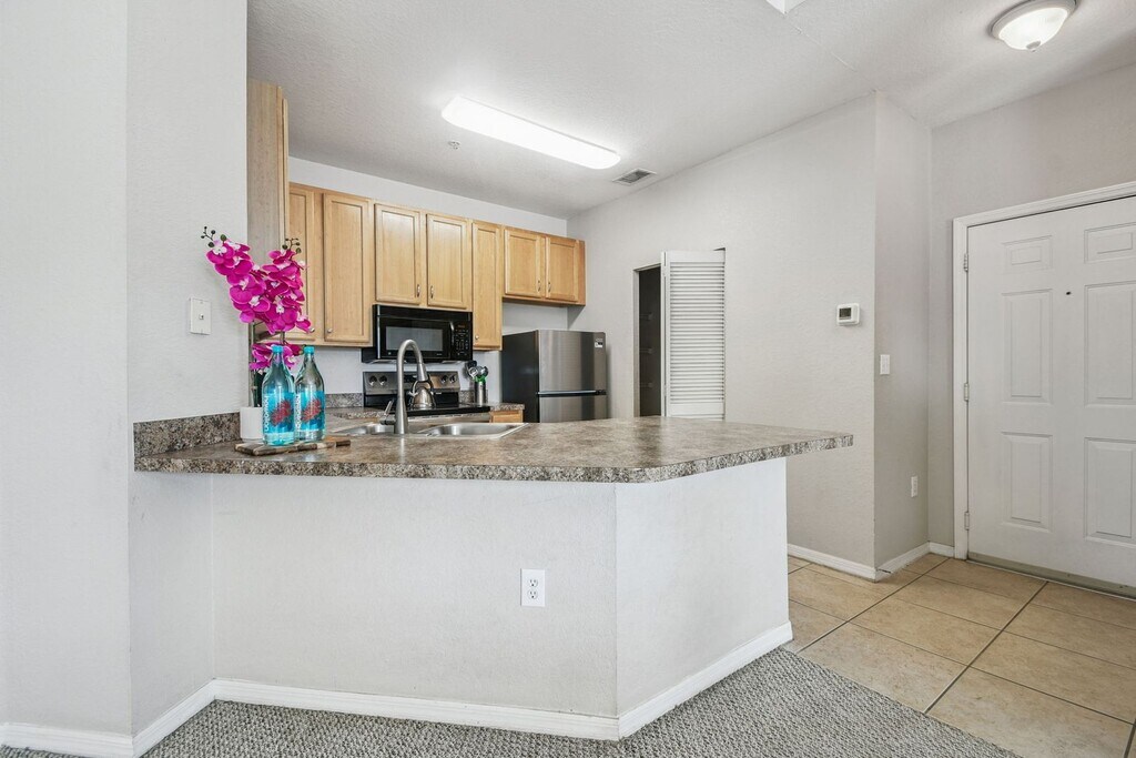 Live the ultimate resort-style lifestyle in this stunning 1-bedroom, 1-bath condo in the highly desirable Courtney Palms community! This top-floor gem boasts soaring vaulted ceilings, ample closet space, an in-unit washer and dryer, a relaxing garden tub, and a private balcony with serene lakeside views perfect for unwinding after a long day. The community is packed with incredible amenities, including a sparkling resort-style pool and spa with sun deck, a cutting-edge fitness center, an executive business center, a stylish clubhouse, a gazebo with propane grills, indoor basketball and racquetball courts, scenic walking trails, a dog park, and picnic areas with charcoal grills. Just minutes from Downtown Tampa, major highways, shopping, dining, and entertainment, this condo truly has it all. Please note: this is a third-floor unit with no elevator.