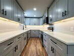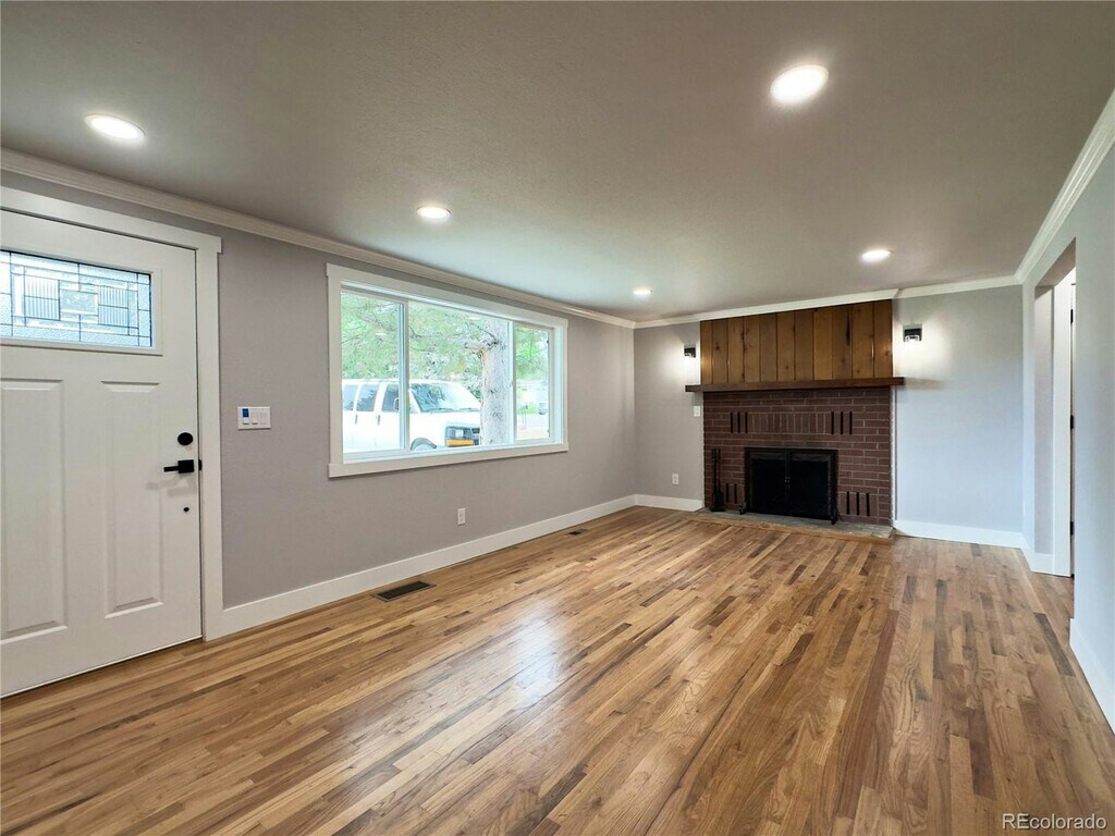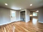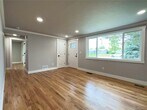 Welcome home to this beautifully updated ranch-style residence offering two bedrooms and one bathroom, blending classic charm with modern comfort. Inside, sunlight streams through large windows, highlighting the rich hardwood floors and freshly painted walls in soft, neutral hues. The inviting living room centers around a timeless brick fireplace, perfect for cozy evenings. The kitchen has been completely redesigned with sleek gray cabinetry, quartz countertops, and stainless steel appliances, offering both style and functionality. The bathroom features elegant tilework, a modern vanity, and updated fixtures for a spa-like feel. Each bedroom provides bright, airy comfort with peaceful views and ample space to relax. Outside, a spacious backyard shaded by mature trees invites outdoor entertaining or quiet retreat. With tasteful upgrades throughout, this home perfectly balances warmth, elegance, and modern convenience—ready for you to move right in.