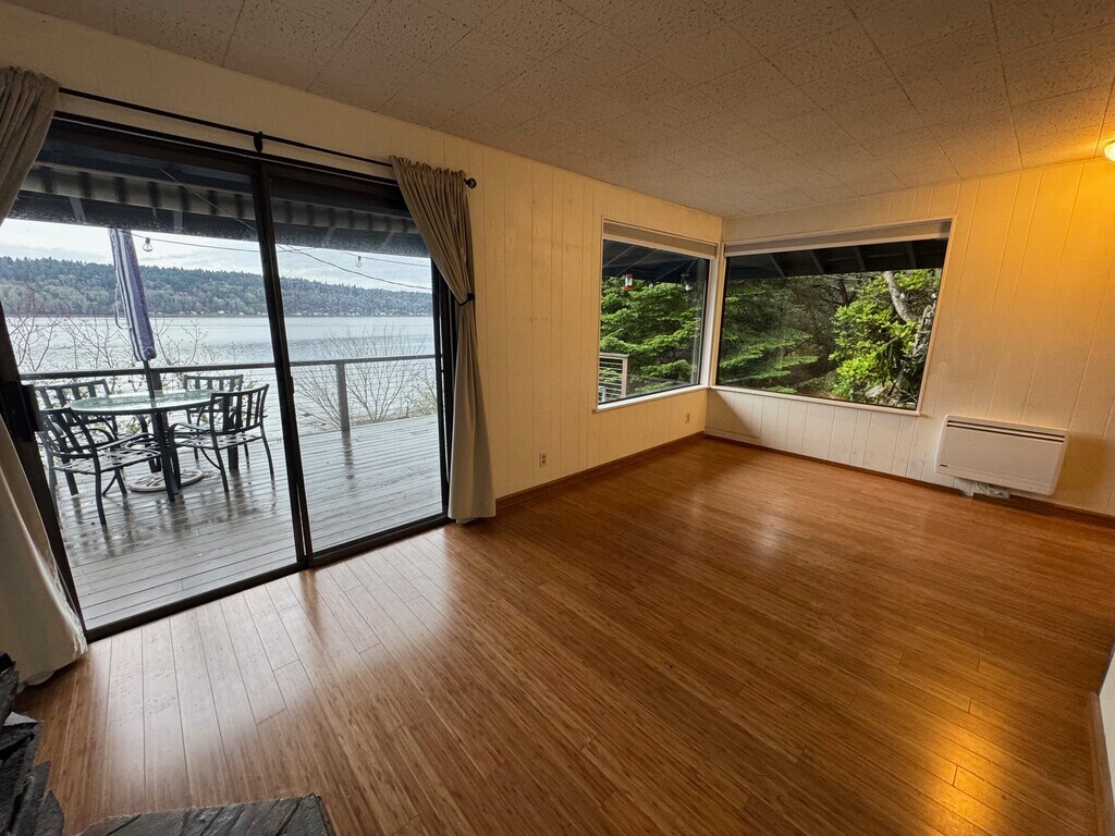 Waterfront access in Dockton! Clean and cozy 2 bed, 1 bath. Perched on a 30ft bank, this residence has expansive west facing views across the harbor from living room and large deck. Kitchen includes a stove top, full fridge, countertop oven, and dishwasher. Kitchen bar for additional dining space. Washer/dryer in detached building. Cats and smaller dogs OK. Wood stove is not functional. Separate house on property is often occupied by owners. Make this sweet cabin yours for a year or more. Rent is $2400/month, plus $200/month for electric and water utilities. See our website for rental criteria and for online application: https:\\ Contact for viewing or questions concerning the listing: VMI Property Management (voice) (voice or text)