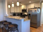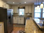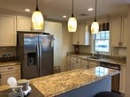 WINTER RENTAL - Gorgeous Craftsman Colonial located three blocks to the beach and close to town available now 'til 5/15/26. This impeccable home is tastefully furnished,features central a/c,gas forced hot air heat,a lovely enclosed front sun porch,refinished hardwood floors,open floor plan with designer kitchen & breakfast bar,dining room with built in window bench and inviting living room. Both bathrooms are nicely remodeled,there are three bedrooms on the second level,and a finished basement with laundry room. Home has a fenced back yard,outdoor shower,stone paver patio,barbecue grill,long driveway and garage bay access for storage (great for beach gear,bicycles,etc.). One small dog (<30lbs) will be considered for an additional $50/month. No cats or other pets. No smoking!