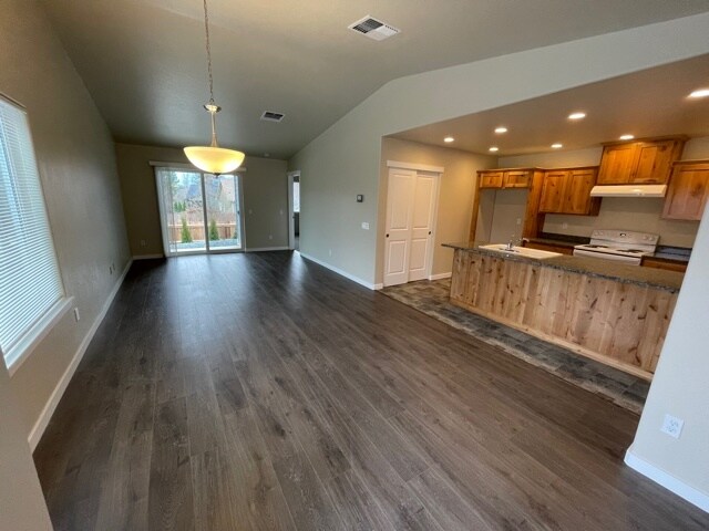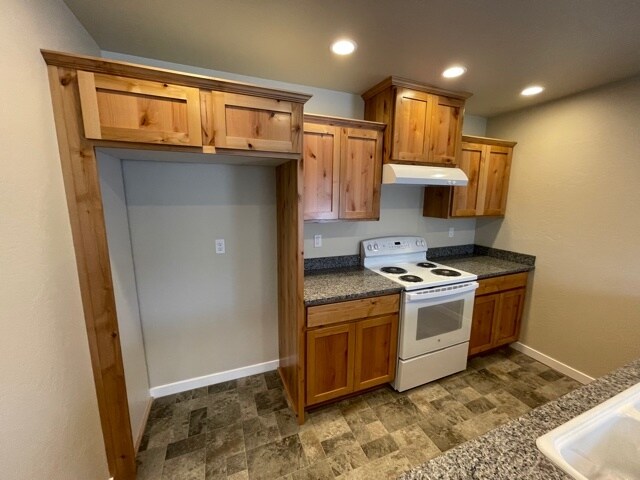 DRIVE BY ONLY - FOR VIEWING 12/1/25 Evergreen Manor - 55+ Community (built 2022) 2 bedroom, 2 bathroom duplex with garage & yard. - Do not miss out on this beautiful apartment home. - The unit features a spacious floor plan and open concept. - Beautiful custom cabinets - Granite countertops - Stove, dishwasher & range hood included - Primary bedroom has a walk-in closet - Primary bathroom has shower stall only no tub - Hall bathroom has a full shower/tub - Plank flooring everywhere except carpet in two bedrooms - Private spacious back yard - Covered patio - Single car garage with garage door opener - Washer/dryer hookups in garage - Single story - No smoking - Pets (upon approval - Under 30 pounds) - additional deposit applies - Beautiful river rock landscaping front and back yard - Apply online at or call for more information at . The application fee is $20.00 per adult. Each adult must apply on a separate application. *Must make 2.5 times rental amount in verifiable monthly income. Tenant pays all utilities including, water & trash. UNIT AMENITIES Air conditioner, Carpet, Dishwasher, Disposal, Fenced yard, Garage parking, Hardwood floors, Heat, Kitchen island, Laundry hookup, Linen closet, Mirrors, Pantry, Pet friendly, Private patio, Stove and oven, Vaulted ceiling, Vinyl floors, Walk-in closets, Window coverings Property pictures are staged only - unit is NOT furnished.