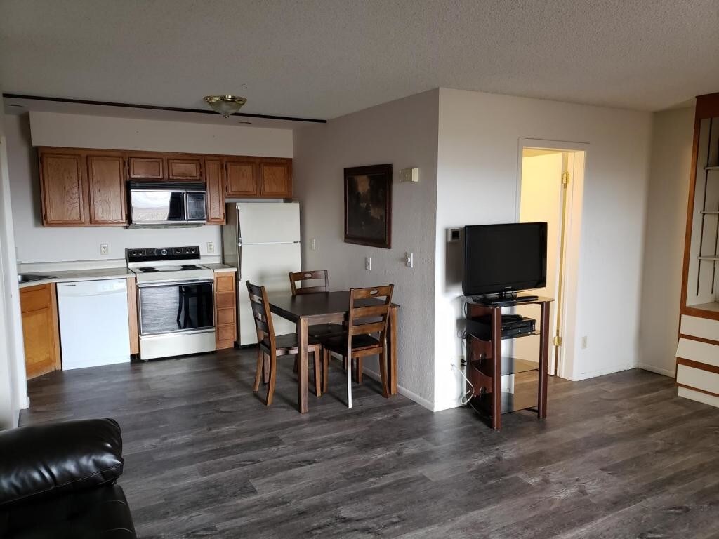 This lower unit is a view condo on the lake side. Sofa Sleeper, Coffee table, Side tables, Kitchen Table. Laminate flooring and AC
