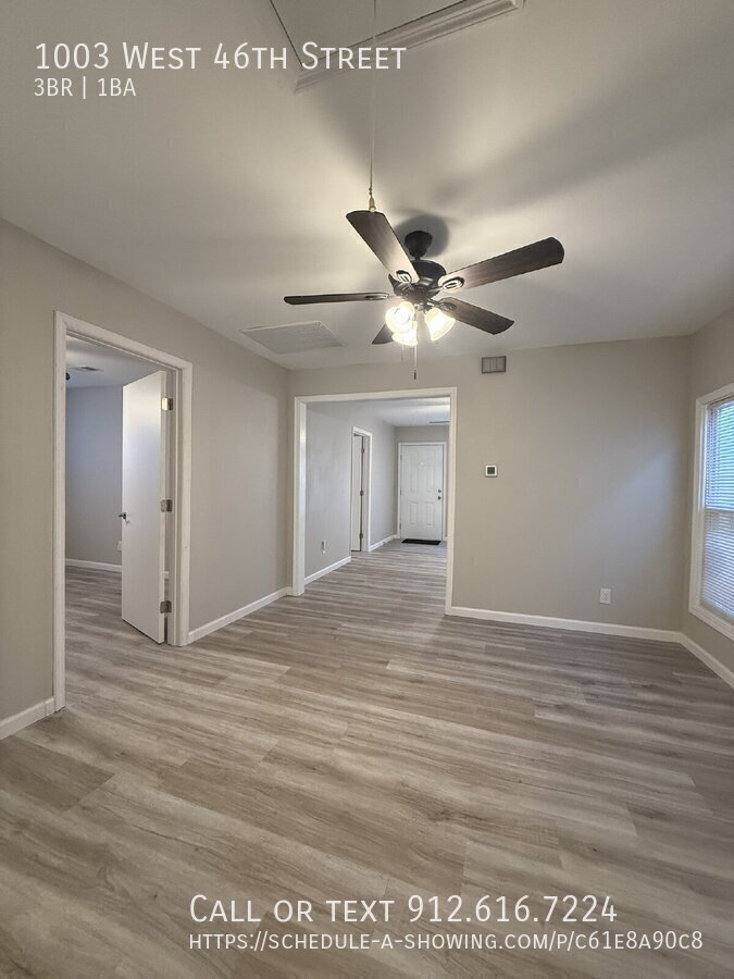 Bask in the charm and elegance of this delightful three-bedroom residence nestled at 1003 West 46th Street in the heart of picturesque Savannah, GA. This home offers an inviting ambiance perfect for relaxation and entertaining. Step inside to discover the full bath designed with comfort and style in mind, ensuring convenience for everyone. Each room is bathed in natural light, creating a warm and welcoming atmosphere throughout the home. The well-appointed kitchen is perfect for culinary adventures, making meal prep a joyous occasion. Located near local amenities, this property offers both tranquility and accessibility. All PMI Savannah Metro residents are enrolled in the Resident Benefits Package (RBP) for $51.95/month which includes liability insurance, credit building to help boost the resident’s credit score with timely rent payments, up to $1M Identity Theft Protection, HVAC air filter delivery, move-in concierge service making utility connection and home service setup a breeze during your move-in, our best-in-class resident rewards program, on-demand pest control, and much more! Application fee and Move-In Fee Transparency: Application fee is $45. Fees required upon move-in include; security deposit, first months rent, Resident Benefits Program ($51.95), Leasing Fee ($75.00), and pet rent/pet deposit (if applicable).Lvp