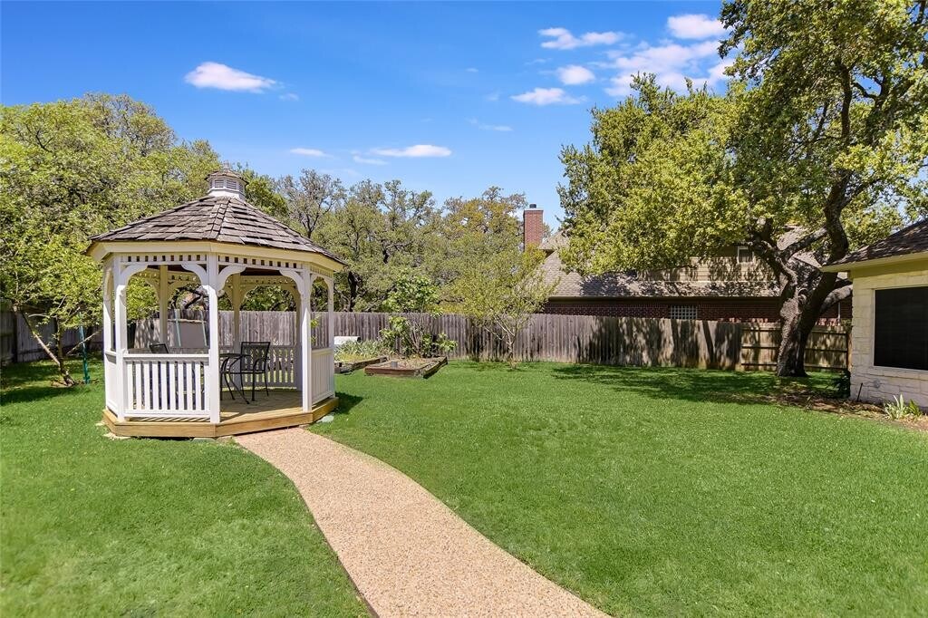 Single-story homes on nearly half an acre in Circle C don't come available often. This one just did. This stunning executive limestone home sits at the end of a quiet cul-de-sac, enveloped by one of the most breathtaking Live Oak canopies in Circle C Ranch. The sweeping lawn, wrought iron fencing, and arched stone entryway set the tone for what awaits inside. Soaring vaulted ceilings, rich hardwood floors, and an open floorplan greet you at the leaded glass front door. A formal dining area features a dramatic arched picture window with Live Oaks pressed right up to the glass. The private office with French doors is perfect for working from home, while the second living area — anchored by a stone fireplace and built-in shelving — opens to the kitchen. White cabinetry, quartz counters, double ovens, stainless appliances, and a bay-windowed breakfast nook complete the space. The primary suite offers a vaulted ceiling, arched transom window, and direct gazebo views. The en suite includes dual vanities, garden tub, and walk-in shower. Three additional bedrooms with crown molding and ceiling fans round out the floorplan. Outside, a flagstone path winds to a private white gazebo surrounded by towering Live Oaks — a cool, shaded escape that keeps utility bills low. Circle C amenities, top-rated schools, MoPac, and downtown Austin all just minutes away. Opportunities like this — this much space, this much yard, this many trees — rarely come available for lease. MLS ID 2163540