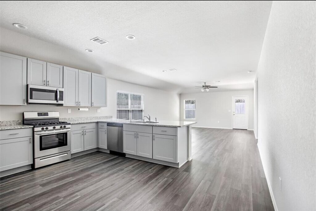 This beautiful 4 bed 2 bath rental home features a spacious and open floor plan with vinyl flooring throughout. The kitchen is well appointed with stainless steel appliances. The three additional bedrooms offer ample space for family or guest. The master suite is a true retreat with walk-in closet and a glass stand-up shower en-suite. This gorgeous home is located in a desirable neighborhood within walking distance to trails and a community fitness center. This property gives the best of both worlds-peaceful country living with easy access to shopping,dining and schools. Schedule your appointment to see it today! MLS# 53374628