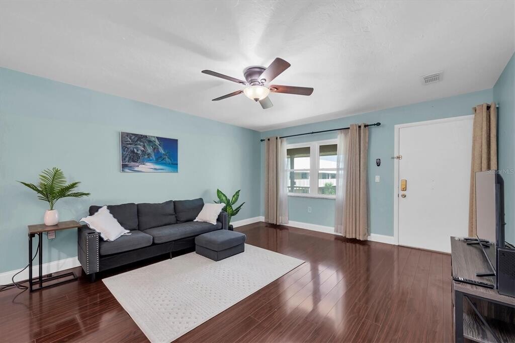 Welcome to this 2/2 in a WATERFRONT GATED Community. Highly active community with lots to do and many amenities. Fully gated secure complex with onsite guard. No need to worry about footsteps from above with this top floor unit. The unit was fully remodeled about six years ago is well maintained and includes Hurricane Impact Windows,new floors,kitchen and appliances. The kitchen has custom touches including granite countertops,beadboard ceilings,wine cubbies,slide out shelf,Samsung gas range and stainless-steel Samsung side by side fridge. The bathrooms have been fully updated including a step-in shower with rain head shower in the master suite. Ceramic tile in the kitchen and bathrooms and composite laminate flooring throughout. Ceiling fans in all main rooms. Beautiful garden views of the courtyard out of your living room window. The unit is furnished and ready to move in and includes a covered carport. The Rent INCLUDES Internet,Cable TV,free natural gas for the heater,and stove and community hot water tank never runs out and no charge! The other reason to love this place is the warm community feel and long list of amenities. Huge auditorium for shows and dances,HEATED swimming POOL with separate jetted SPA,social bar,morning coffee,huge library,card room,billiards,ping pong,foosball and well-equipped workshop for your wood working hobbies. Fitness facility with plenty of stationary machines and free weights. tennis courts,PICKLE BALL,bocce ball,shuffleboard and nature walking path around the complex with areas to launch a Kayak or Paddle Board. If this isn't enough the bike trail and Seminole Waterfront park with kayak launch are minutes away. Close to plenty of Shoppes,restaurants,Seminole Mall and minutes to the beach! MLS# TB8448244