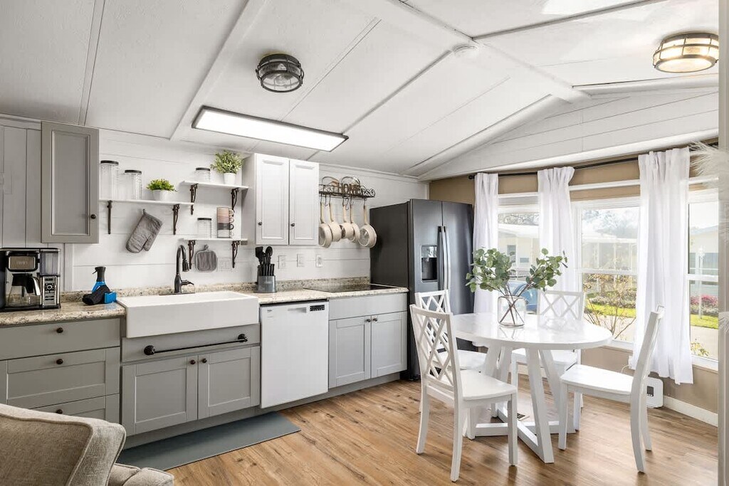 This property is also available for long-term renting. Fully furnished. Please inquire for additional information. Welcome to your Dade City getaway! This charming 3-bedroom, 1-bath manufactured home is your perfect mix of comfort, recreation, and relaxation. Nestled in the heart of picturesque Dade City, this cozy retreat offers a modern open-concept design, resort-style outdoor amenities, and all the essentials for an easy, carefree stay. Step inside and unwind in the spacious living area, where modern furnishings and warm touches invite you to relax after a day of adventure. The open layout connects the living room, dining area, and fully equipped kitchen, making it easy to gather, cook, and share meals together. The kitchen is stocked with everything you need — from cookware to small appliances — to create your favorite dishes at home. Sleeping Arrangements: Bedroom 1: Queen Bed Bedroom 2: Queen Bed Bedroom 3: Full Bed Work & Relax Need to catch up on work while traveling? A dedicated workspace is available in the side room — perfect for remote work or planning your next Florida adventure. Outdoor Amenities One of the highlights of this rental is the Outdoor Amenities. Enjoy your morning coffee on the screened-in patio, or head outside for endless fun and relaxation! Pool Waiver Notice For insurance purposes, all guests are required to sign our pool waiver before arrival. If not signed, we reserve the right to cancel the reservation fee-free. Access to the property will not be permitted without this completed form. We'll send it immediately after booking — thank you for your understanding! Vacant Lot for Rent! Gives you plenty of room to feel at home, with extra privacy, and currently backs up to an open pasture. This fenced-in backyard also comes with a large storage shed. Dive into a vibrant community life at this charming property! Beyond the comfortable home, you'll discover a wealth of amenities: an inviting heated pool, dedicated RV parking (optional), and high-speed internet and cable for seamless entertainment already installed. Enjoy a friendly competition on the pickleball and shuffleboard courts, hone your swing at the double golf practice tees, or gather around the fire pit for cozy evenings. This community fosters connection with movie nights, card games, potlucks, and coffee hours. Plus, your monthly fees cover water, sewer, trash, and common area maintenance.