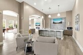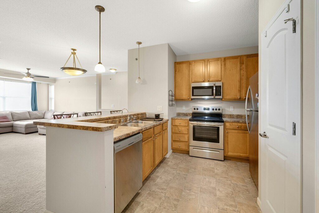 PICS SHOW 3 PARTY HALLS ,GYM,POOL and Furnished ,Join the City Walk neighborhood and live in a stylish condo with brand new SS kitchen appliances. Ideal location with coffee house, restaurant, shops, and exceptional amenities; including, club house w/pool, hot tube, sauna, simulated golf, incredible 1st class workout room, gathering areas, game room, walking trails, new updated dog play park. The walk-up condo unit is on the 2nd floor with all living facilities on one floor, newly painted, and professionally cleaned. The unit has 1 bedroom with a 2nd bedroom/den/guest room, 9 ft ceiling, french doors, a kitchen with step in panty, breakfast bar, washer and dryer behind french doors, and move in ready.