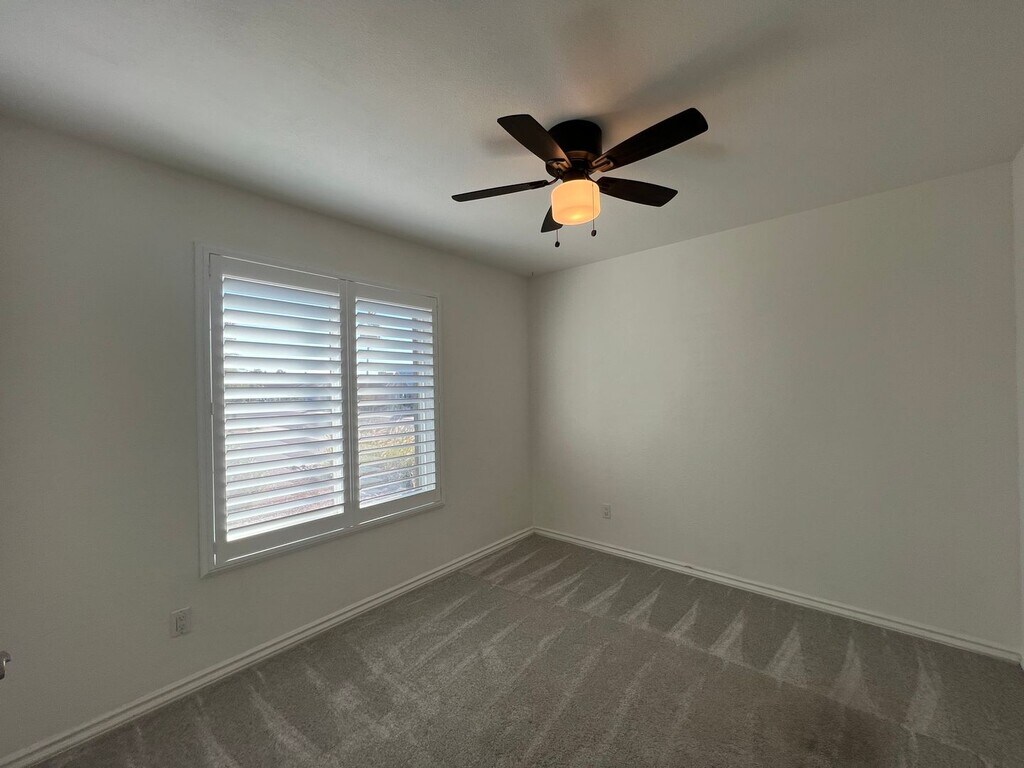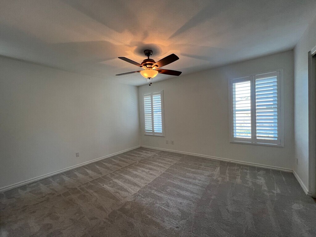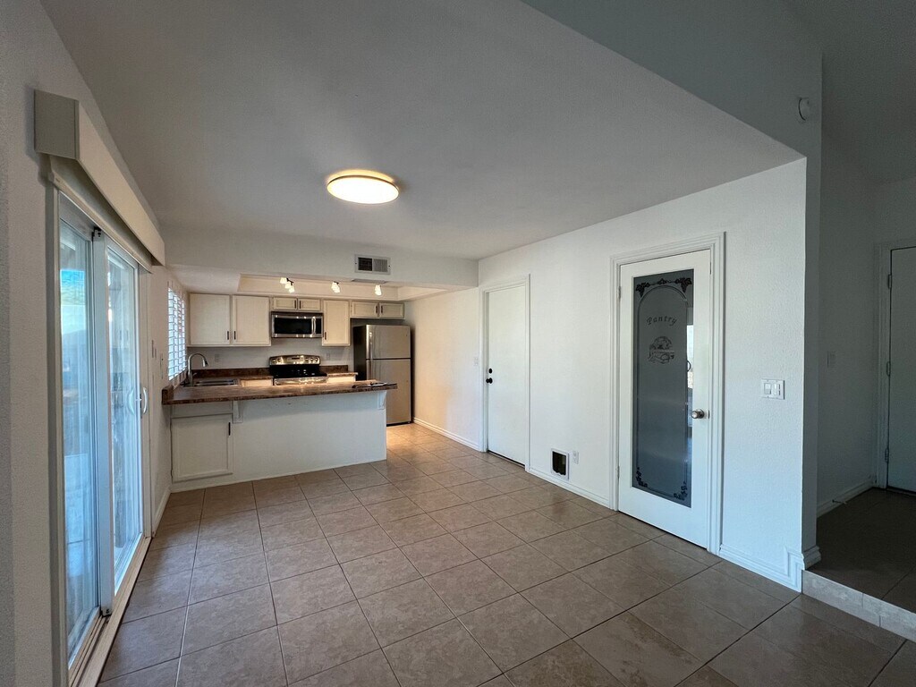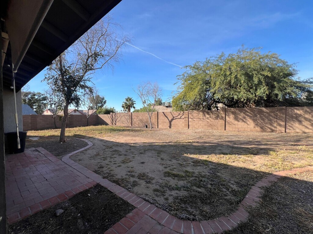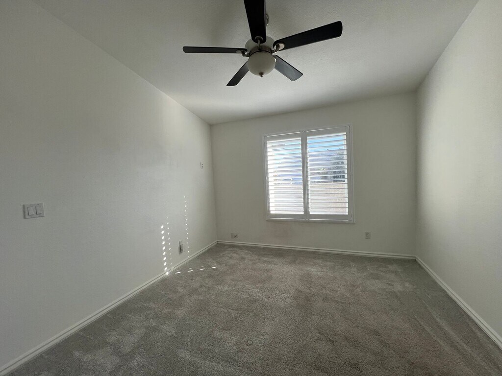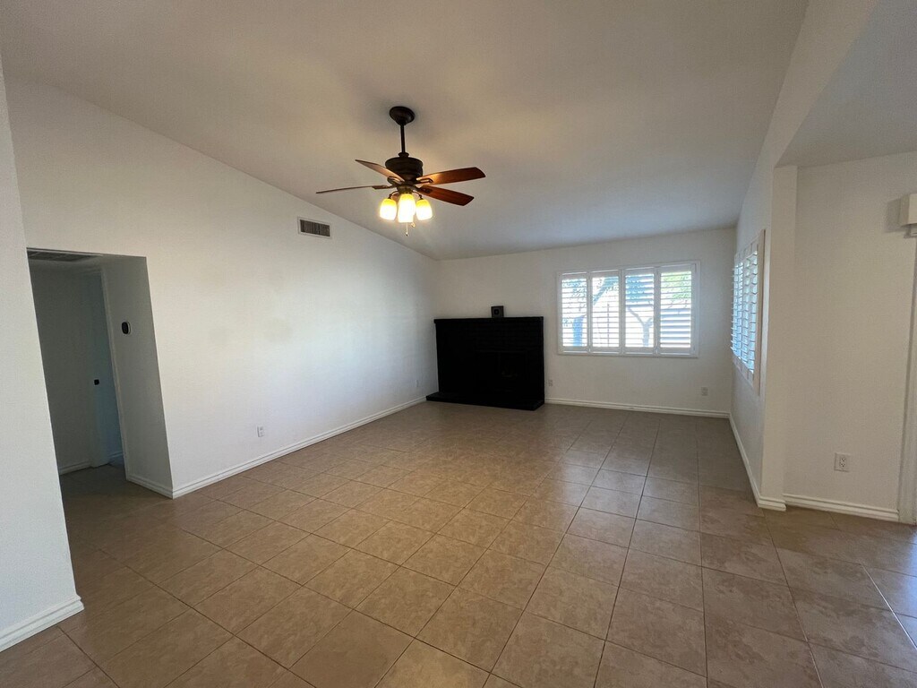 Home is currently occupied through March. This adorable 3 bedroom home has neutral tile throughout with newer carpet in the bedrooms, upgraded energy efficient windows with shutters, stainless steel appliances and SOLAR to reduce your summertime energy bills. This home boasts a super friendly layout with a brick fireplace in the family room, breakfast bar, pantry closet, ceiling fans...built in shelving in the primary closet, step-in tiled shower in ensuite. The guest bathroom has a large vanity, dual sinks and shower/tub combo. Cat friendly home with a secured special kitty litter box area to keep the litter area separate from the home's living space. HUGE backyard and no HOA, corner lot on a cul-de-sac street. $25 monthly admin fee in addition to the rent. Quick access to I-10, 202, 60, 101, close to the base of the mountains with a view of them from the backyard. P
