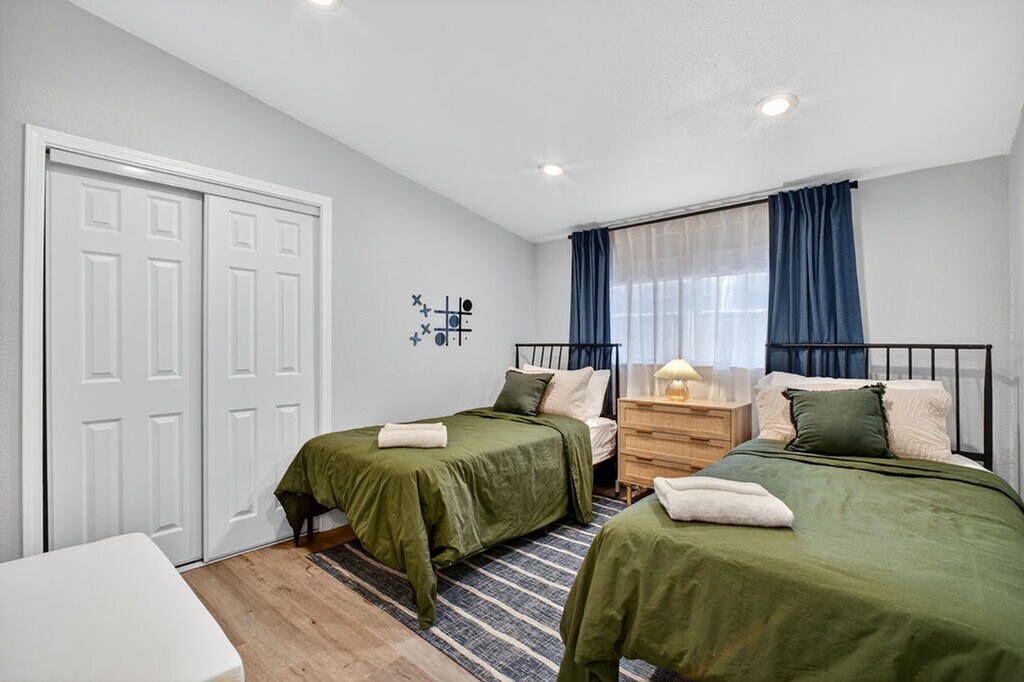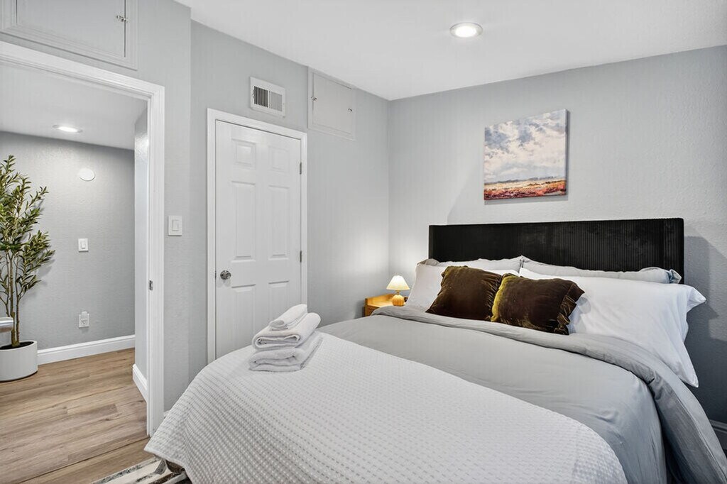 Escape to this coastal-inspired San Jose retreat and feel at home. This 4-bedroom, 2-bath home is located on the 2nd floor. This thoughtfully curated home blends comfort, style, and function. The open-concept living area features plush seating and curated décor. The kitchen is perfect for gourmet cooking or casual dining and includes a full suite of appliances: oven, microwave, and blender, as well as a coffee maker, rice cooker, water kettle, stocked cookware, utensils, and essential pantry items. Enjoy the in-unit washer and dryer with complimentary detergent, extra linens, towels, and cleaning supplies. Indoor attached garage, luggage stands, and hampers are available. Minutes from top Silicon Valley companies, Santa Clara Convention Center, Great America, and Hwy 101, this home is situated in a prestigious San Jose location. Nearby amenities (within 10 minutes) include groceries at Costco, Walmart, and Target, dining at upscale restaurants, cafés, and Silicon Valley staples, and attractions like Levi’s Stadium, California’s Great America, and Santa Clara Convention Center. The bedrooms are located upstairs on the 2nd floor. Includes a dedicated office and additional work room, each tailored for focus with fast Wi-Fi. [SI]